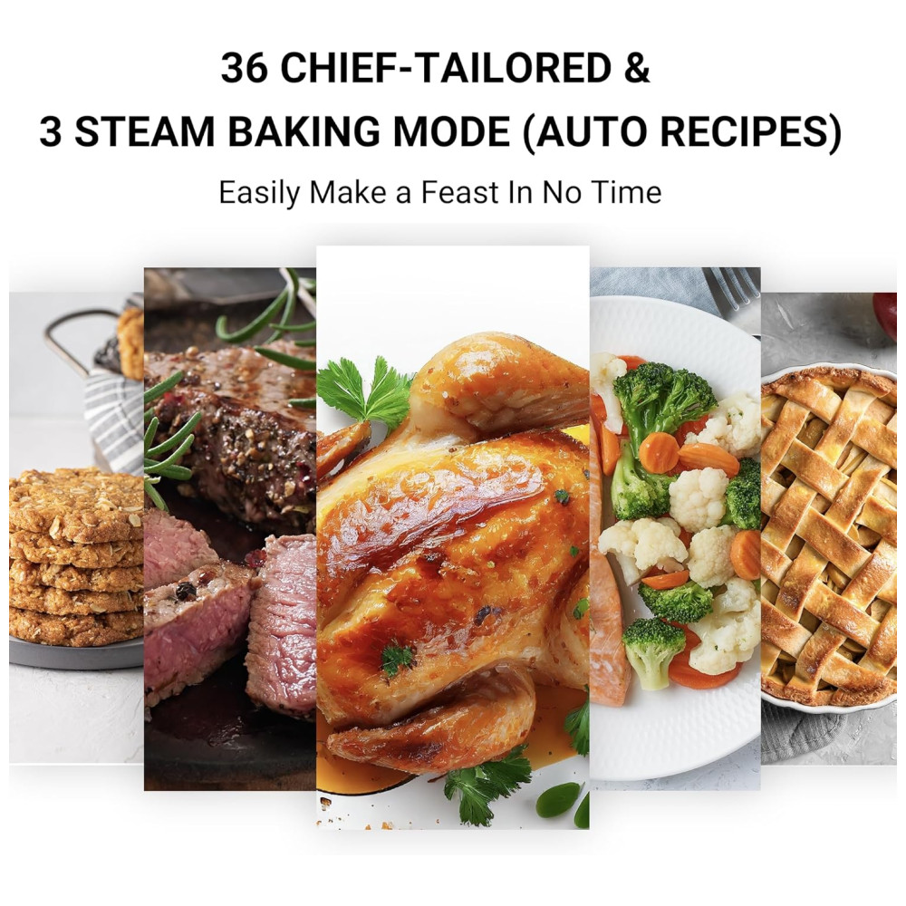CORPO COMPACTO DE 20L: Este forno de convecção possui uma capacidade de 20 litros, com design de camada dupla, economizando espaço e podendo ser colocado de forma flexível na sua cozinha. Atende à necessidade de preparar uma variedade de alimentos ao mesmo tempo. A caixa de água tem grande capacidade e pode ser usada por até 5 horas, sem a necessidade de reabastecimento.