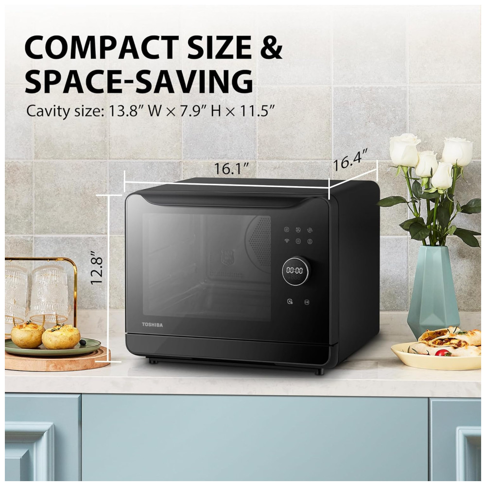 Forno a Vapor Compacto 6 em 1 com Capacidade de 19L 36 Menus Predefinidos e Limpeza a Vapor 110V 1800W TOSHIBA Preto