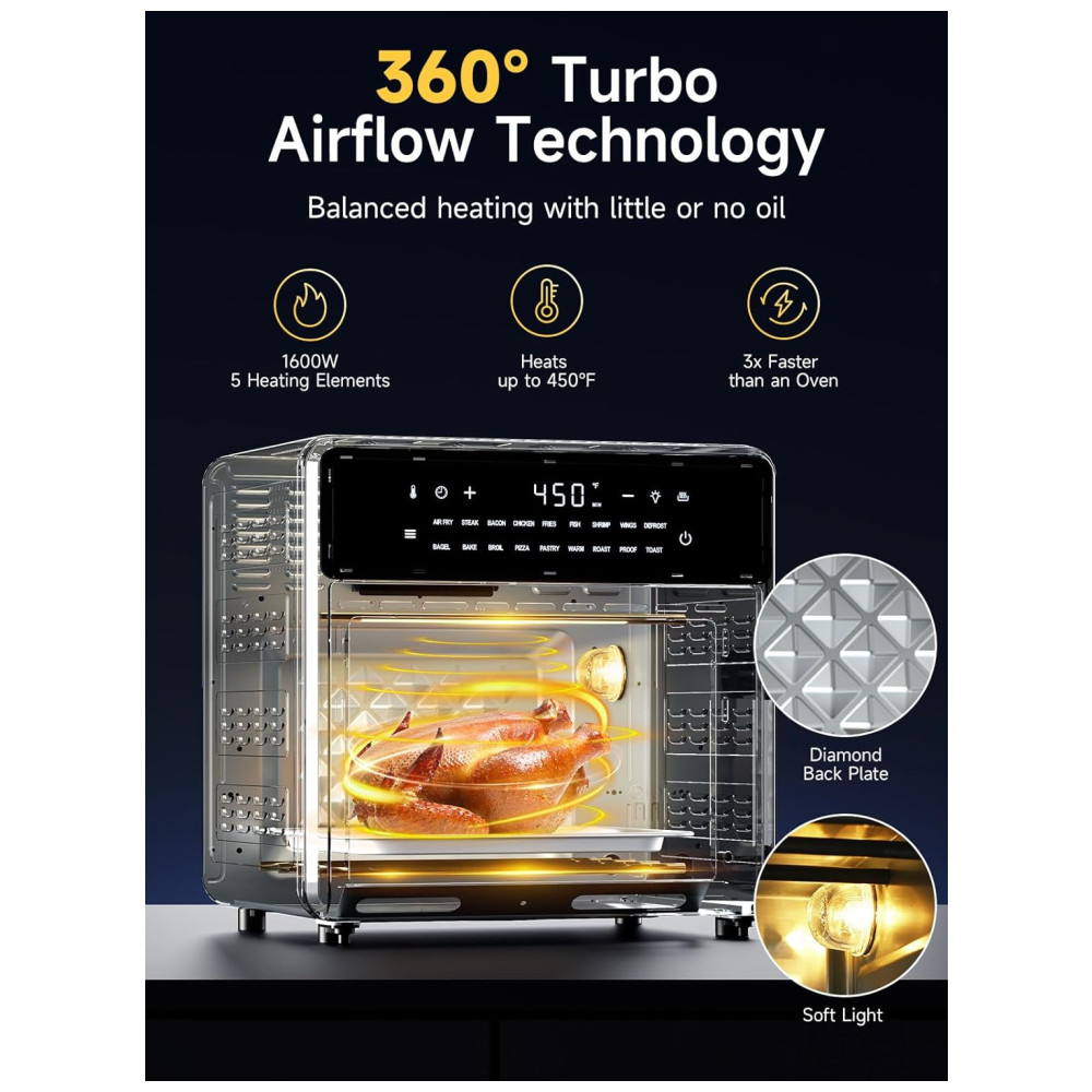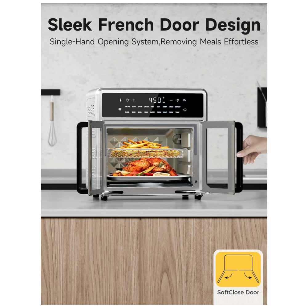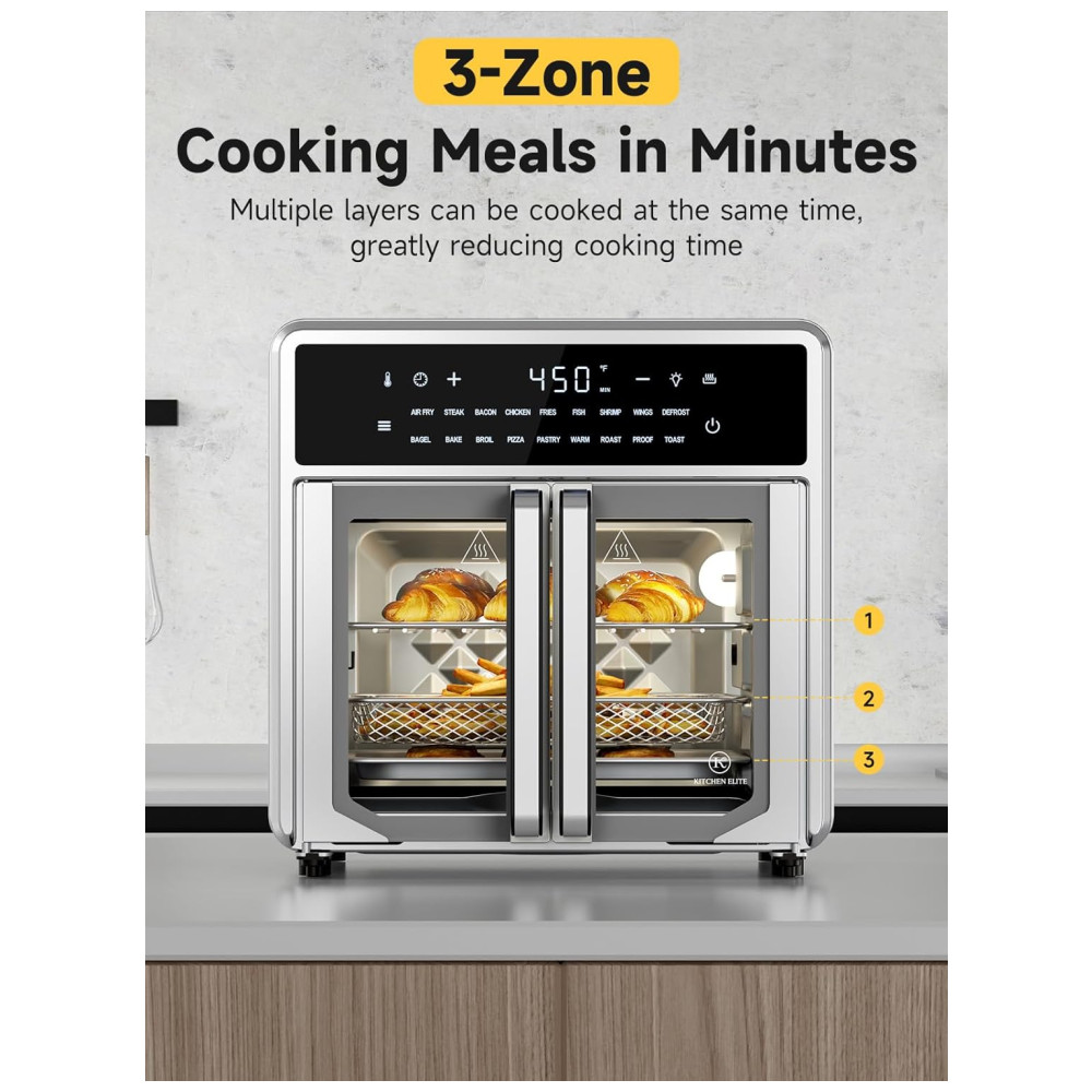 Forno Air Fryer 1474L com Porta Francesa e 18 Predefinições 1 Pré-Aquecimento e Iluminação 110V Kitchen Elite Prata