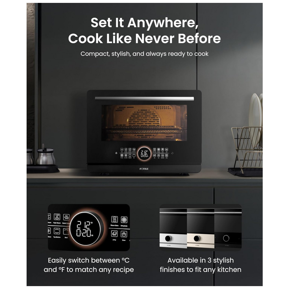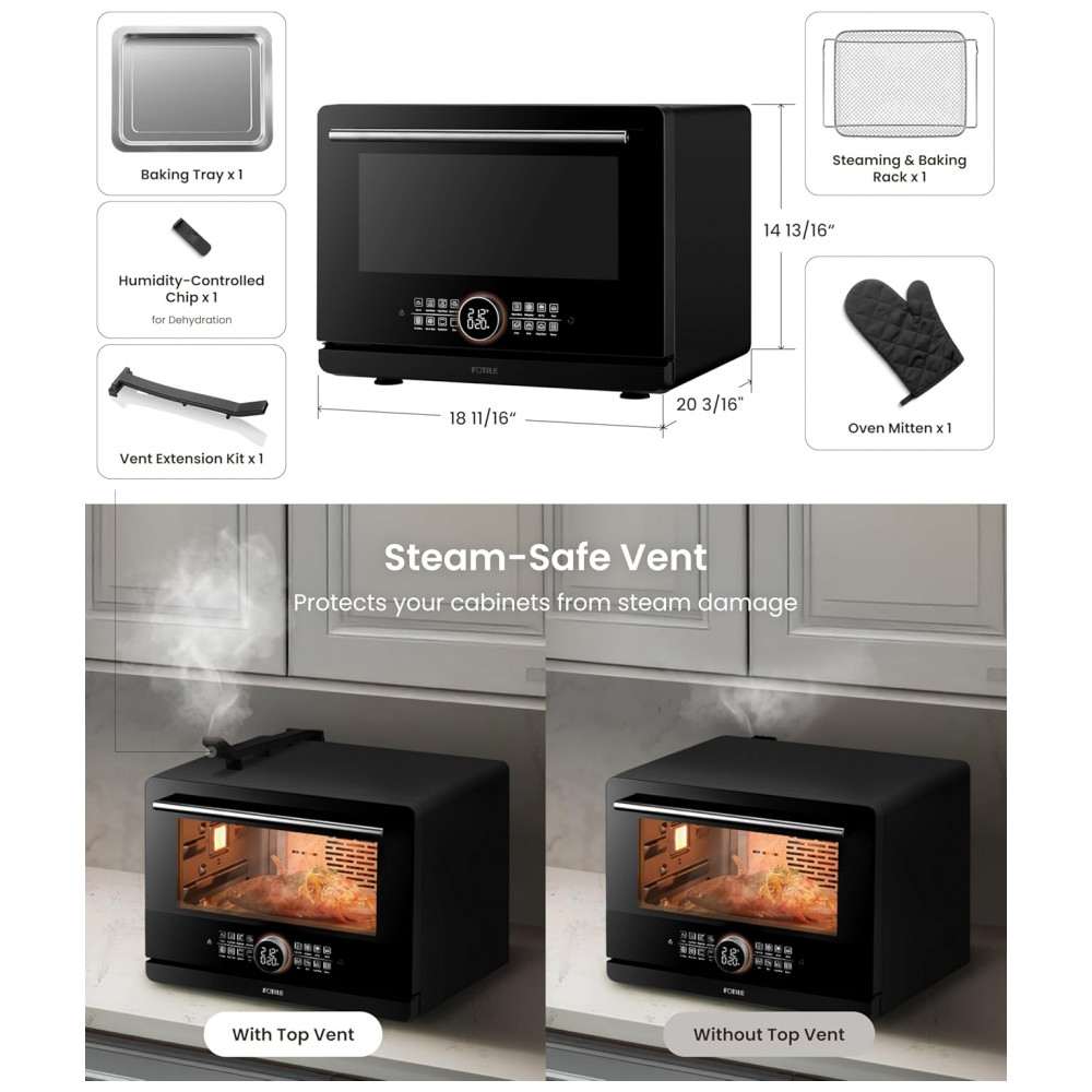 Forno Combinado FOTILE ChefCubii Preto 31L 4 em 1 Vapor Air Fry Convecção Desidratador 1800W 110V