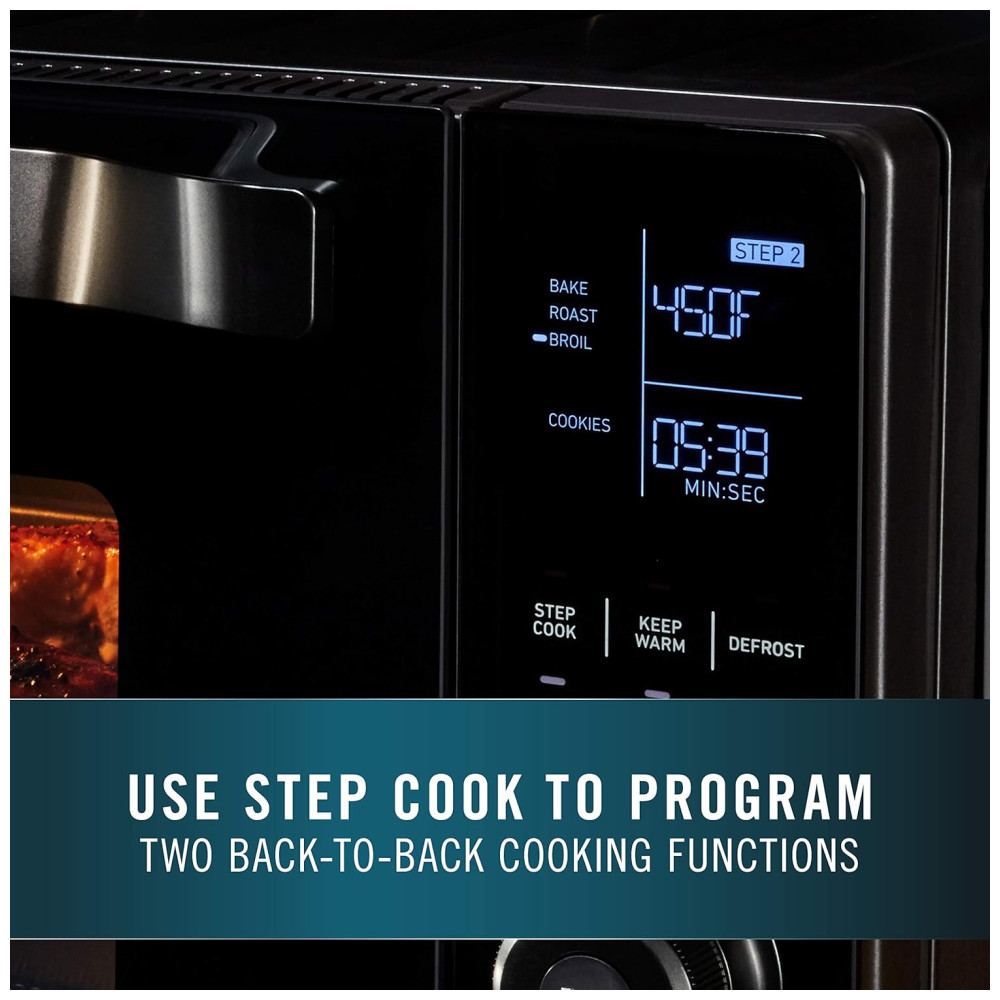 12 Funções de Cozimento Pré-Programadas: Inclui tostar, bagel, assar, grelhar, assar lentamente, pizza, cookies, reaquecer, desidratar, manter aquecido, descongelar e fermentação de massa. A função “Step Cook” permite programar duas funções consecutivas para maior versatilidade.