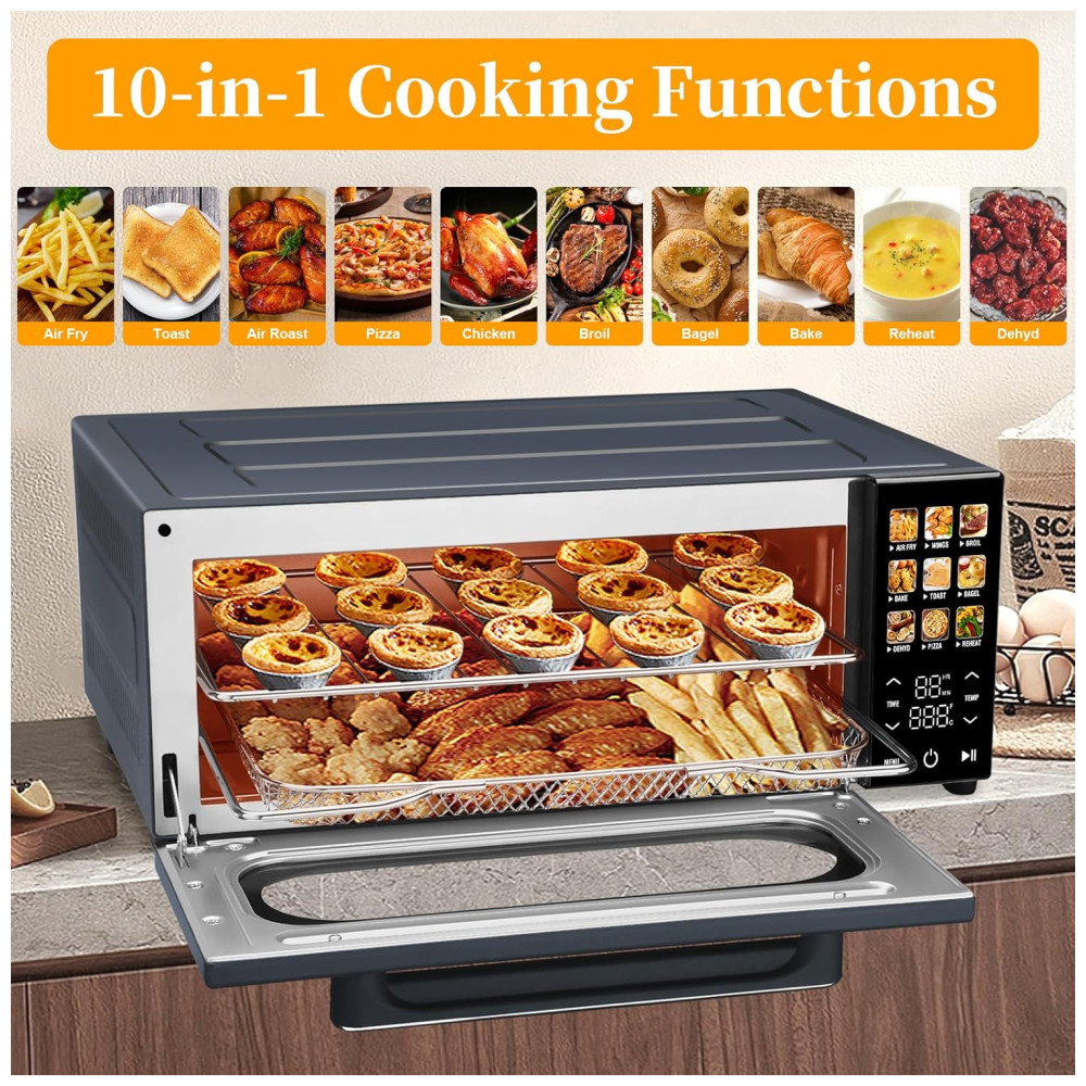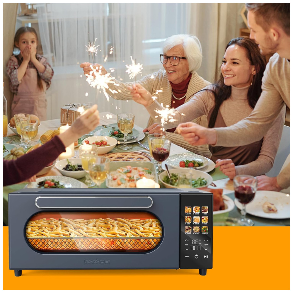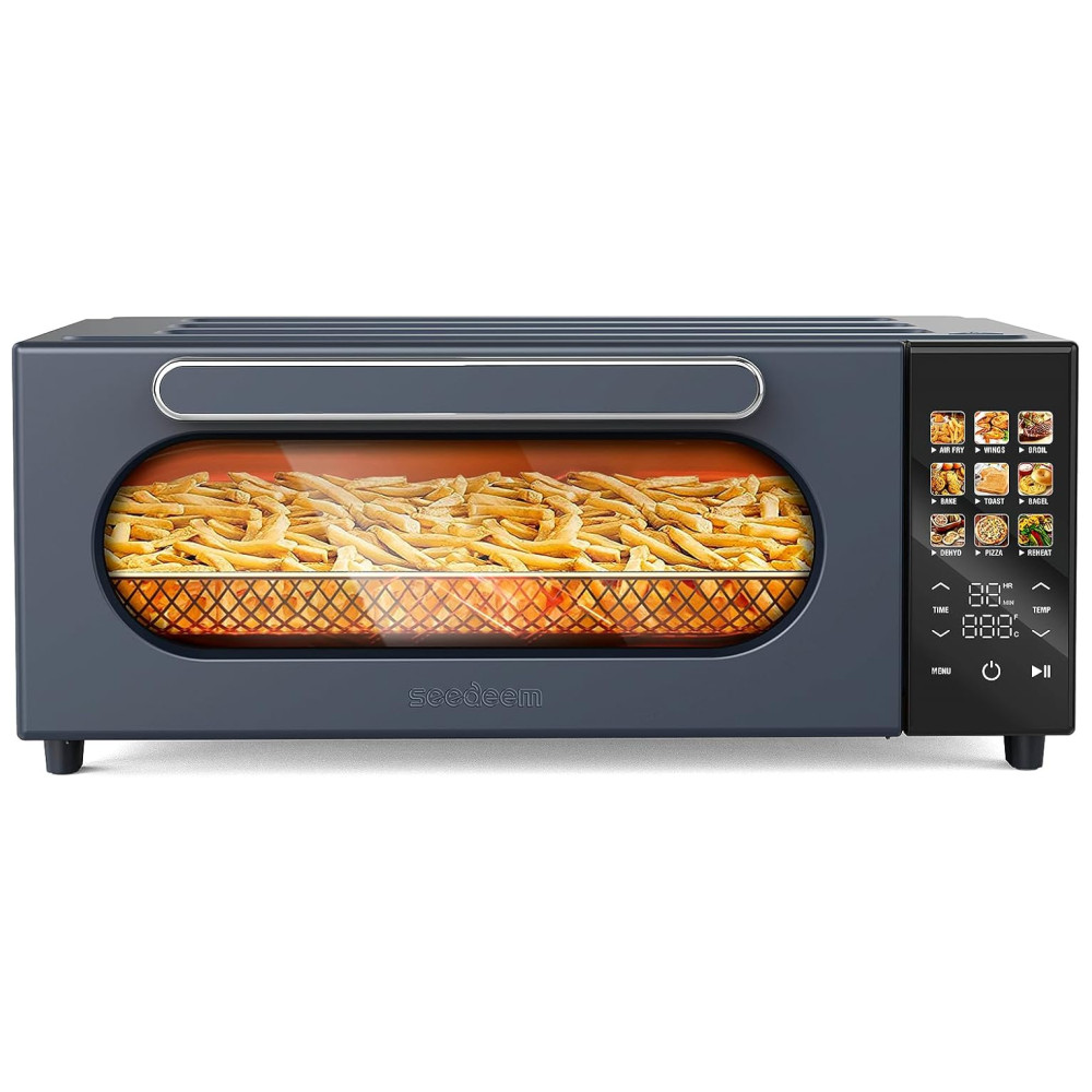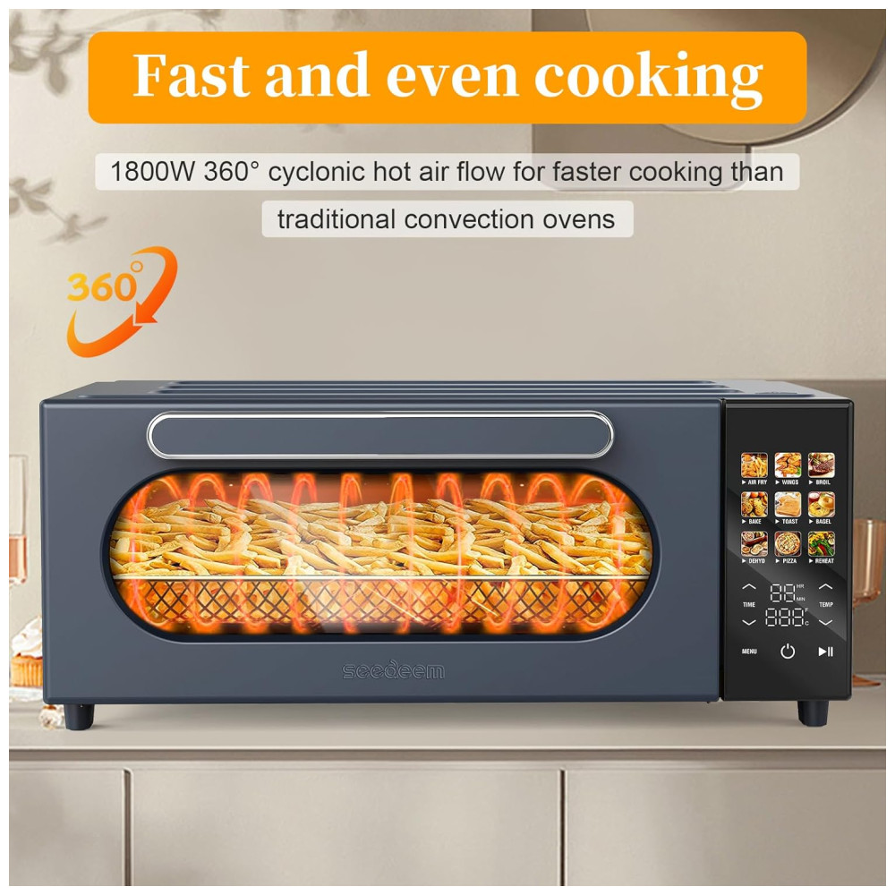 Forno de Convecção 10 em 1 15L com Display LCD 10 Funções Predefinidas e 4 Acessórios 1800W SEEDEEM Cinza