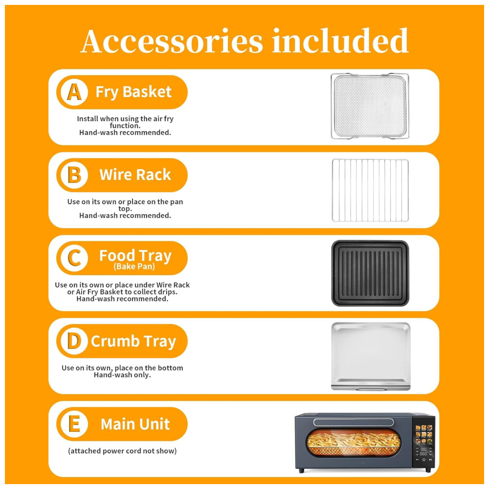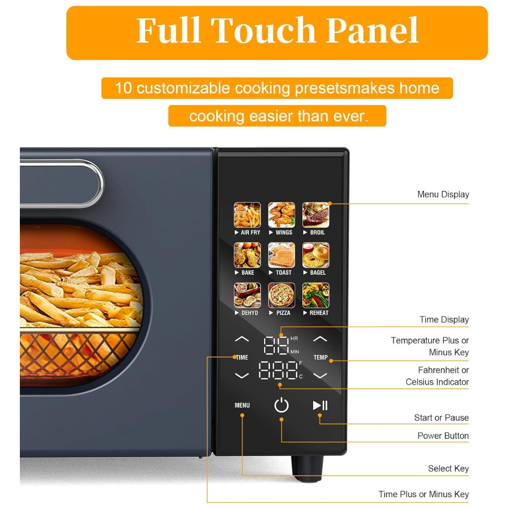 Graças à inovadora tecnologia de circulação de ar quente 360°, este forno utiliza 85% menos óleo em comparação aos métodos tradicionais de fritura, mantendo a textura crocante dos alimentos. É a escolha perfeita para preparar frango, batatas fritas, bifes, peixes e muito mais.