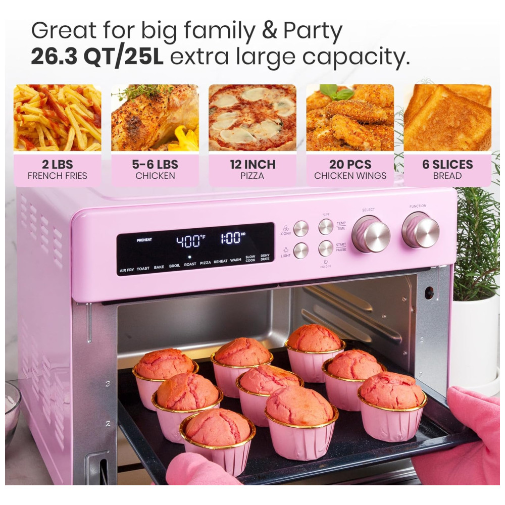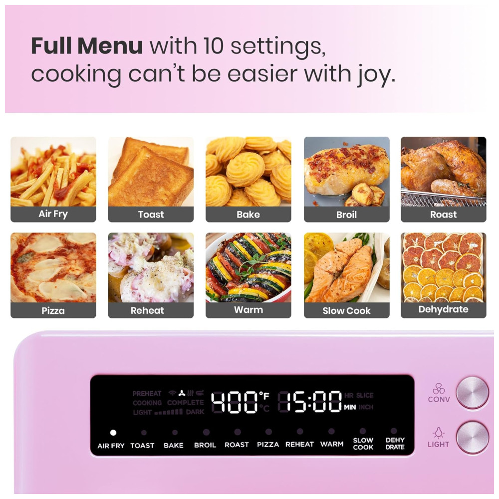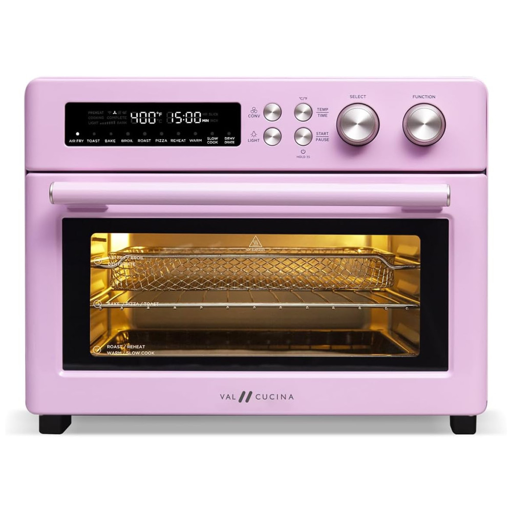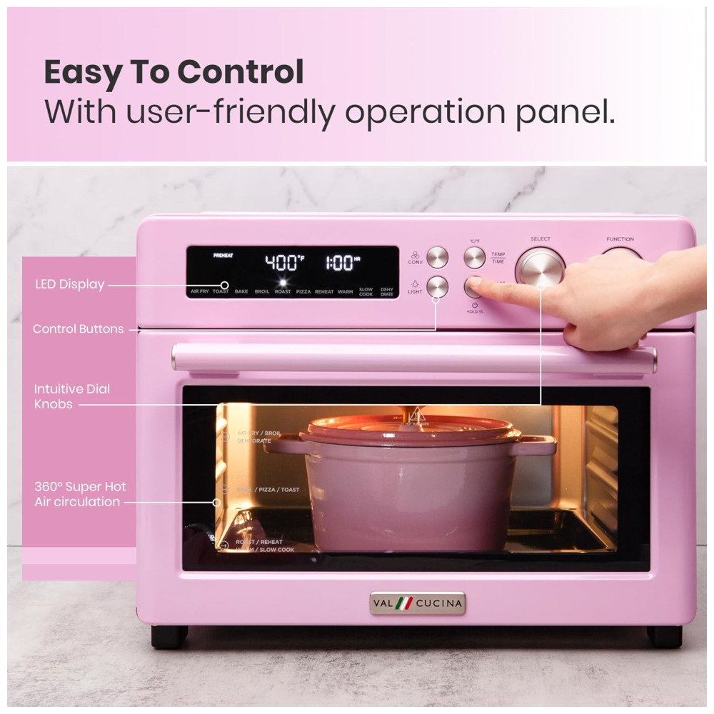 Forno de Convecção 10 em 1 248L com Função Air Fryer Livro de Receitas e Aquecimento Infravermelho 1750W Val Cucina Retrô Rosa