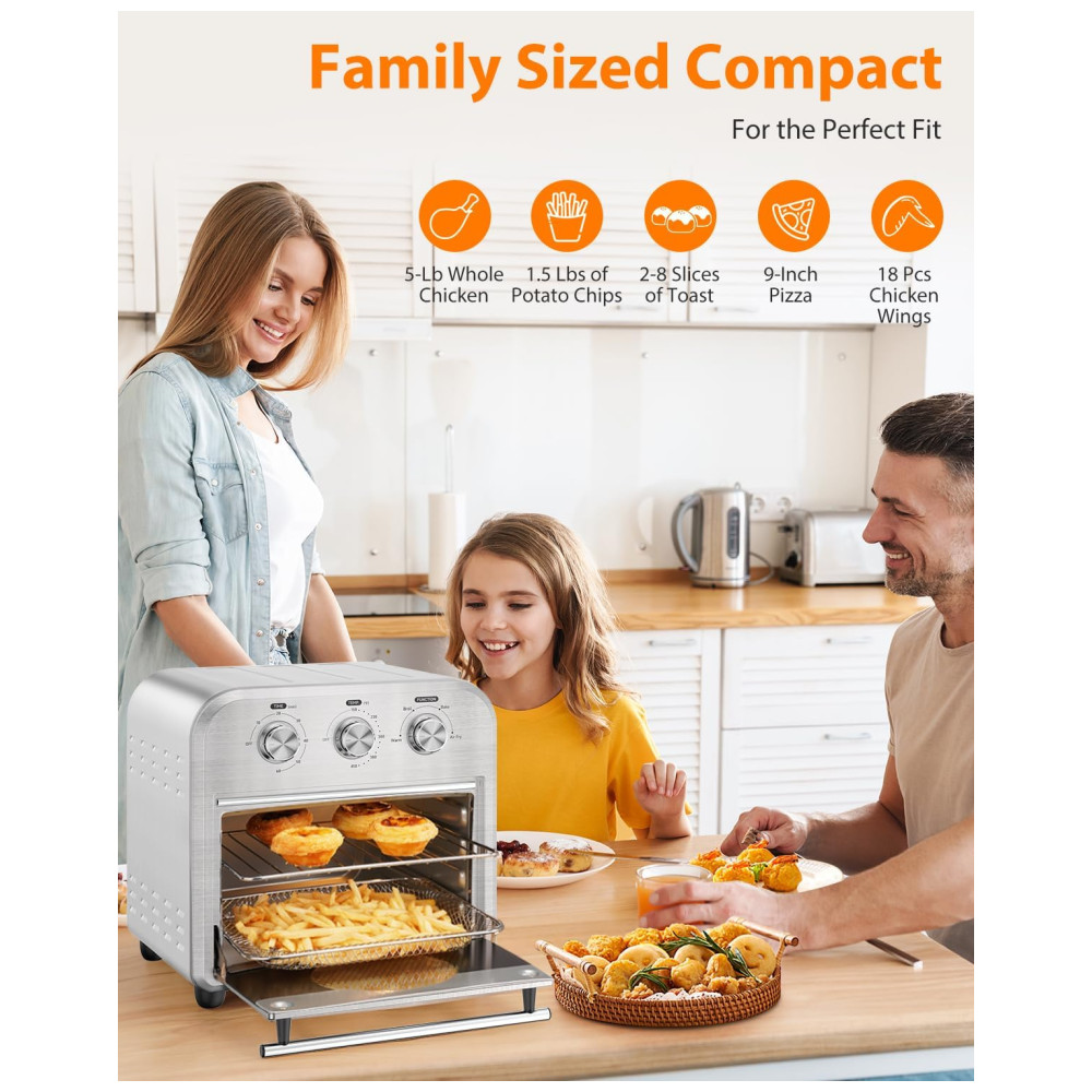 Capacidade de 13,2 Litros: Ideal para uma variedade de preparos, como 4 fatias de pão, uma pizza de 23 cm ou 700 g de asas de frango, tornando-o perfeito para refeições familiares.