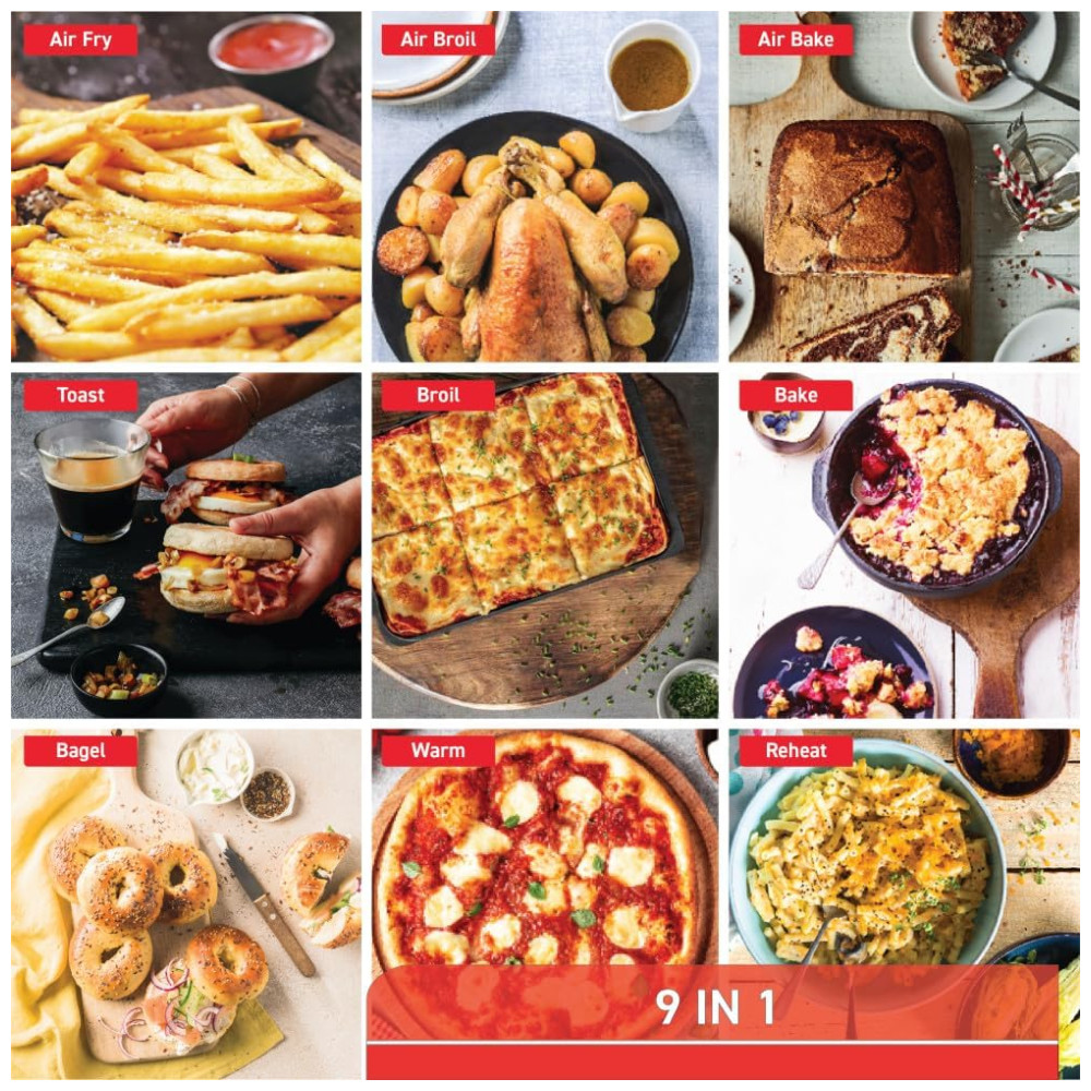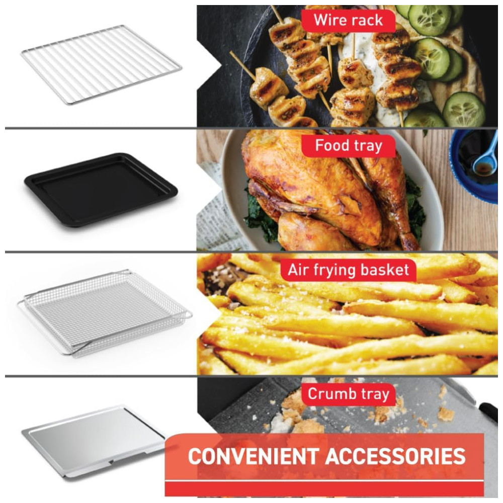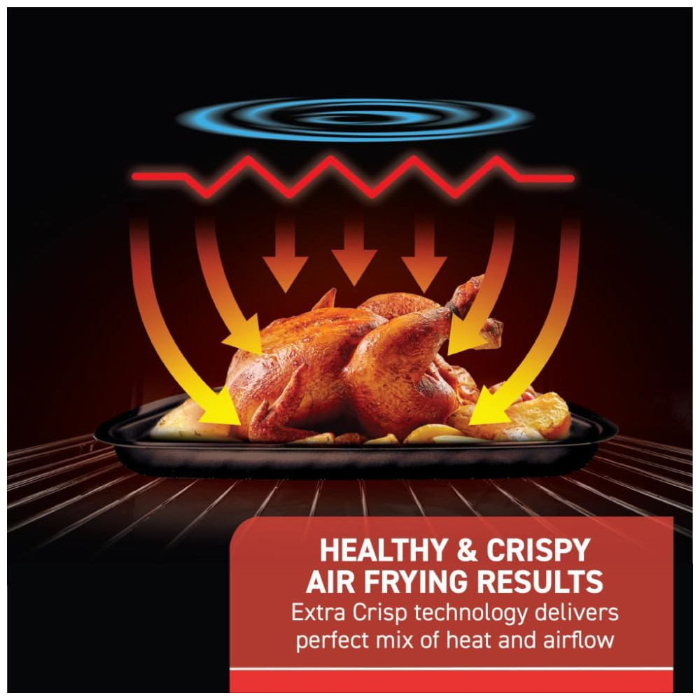 Air Fryer e Forno em um Só Aparelho: Experimente a versatilidade de ter um forno completo e uma air fryer em um único produto, oferecendo funções de preparo que vão de fritar a assar, tostar e aquecer, com controles simples e fáceis de ajustar.
