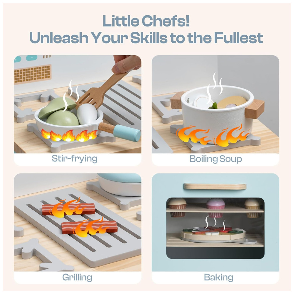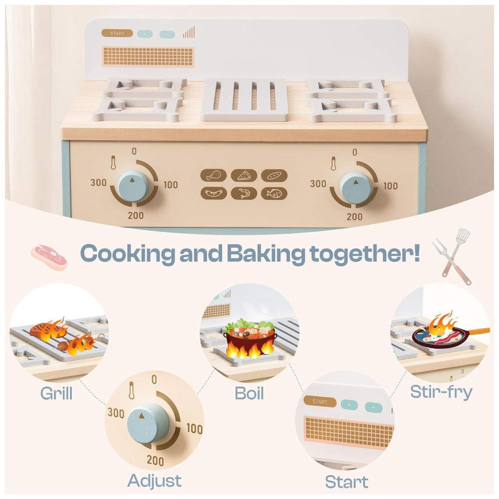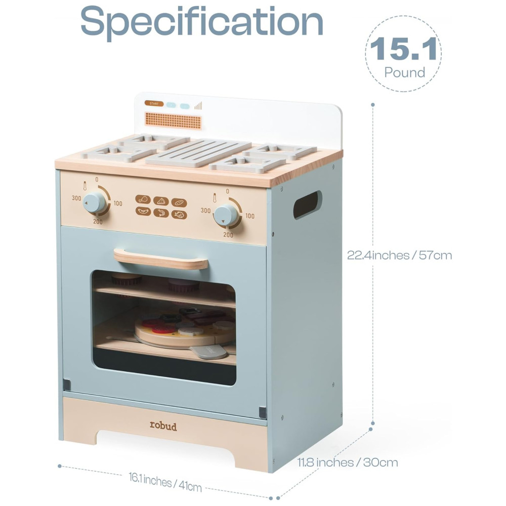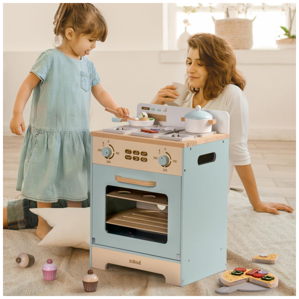 Forno de Cozinha Educativa de Brincar em Madeira ROBUD com Mini Cupcakes e Pizza para Crianças – Brinquedo Realista de Forno de Madeira