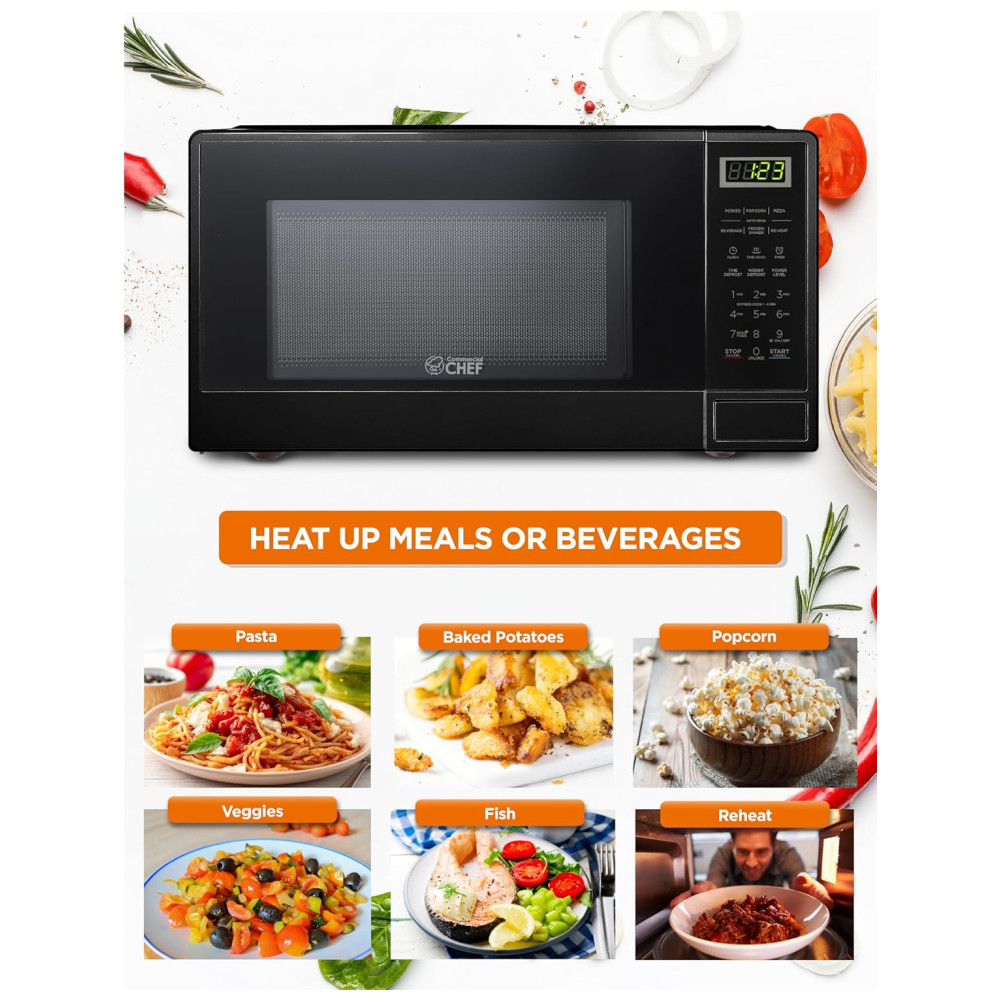 Quando se trata de fornos de micro-ondas, o Micro-ondas Commercial Chef de 1000 watts e 14,6 kg é a solução para refeições rápidas e deliciosas. Prepare pipoca, massas e outros favoritos saborosos de forma eficiente. Com 10 níveis de potência, incluindo 6 menus pré-programados, este micro-ondas compacto de 54,1 x 41 x 29,7 cm oferece um aquecimento excepcional. Controle digital preciso que permite aquecer alimentos de 30 segundos a 99 minutos. Com recursos impressionantes como 1000 watts de potência, botão de controle prático, prato giratório e capacidade, este micro-ondas preto se destaca. Perfeito para sua vida agitada, este micro-ondas permite aquecer refeições, lanches e bebidas de forma rápida. Aproveite a praticidade de saborear alimentos deliciosos sem perder tempo.