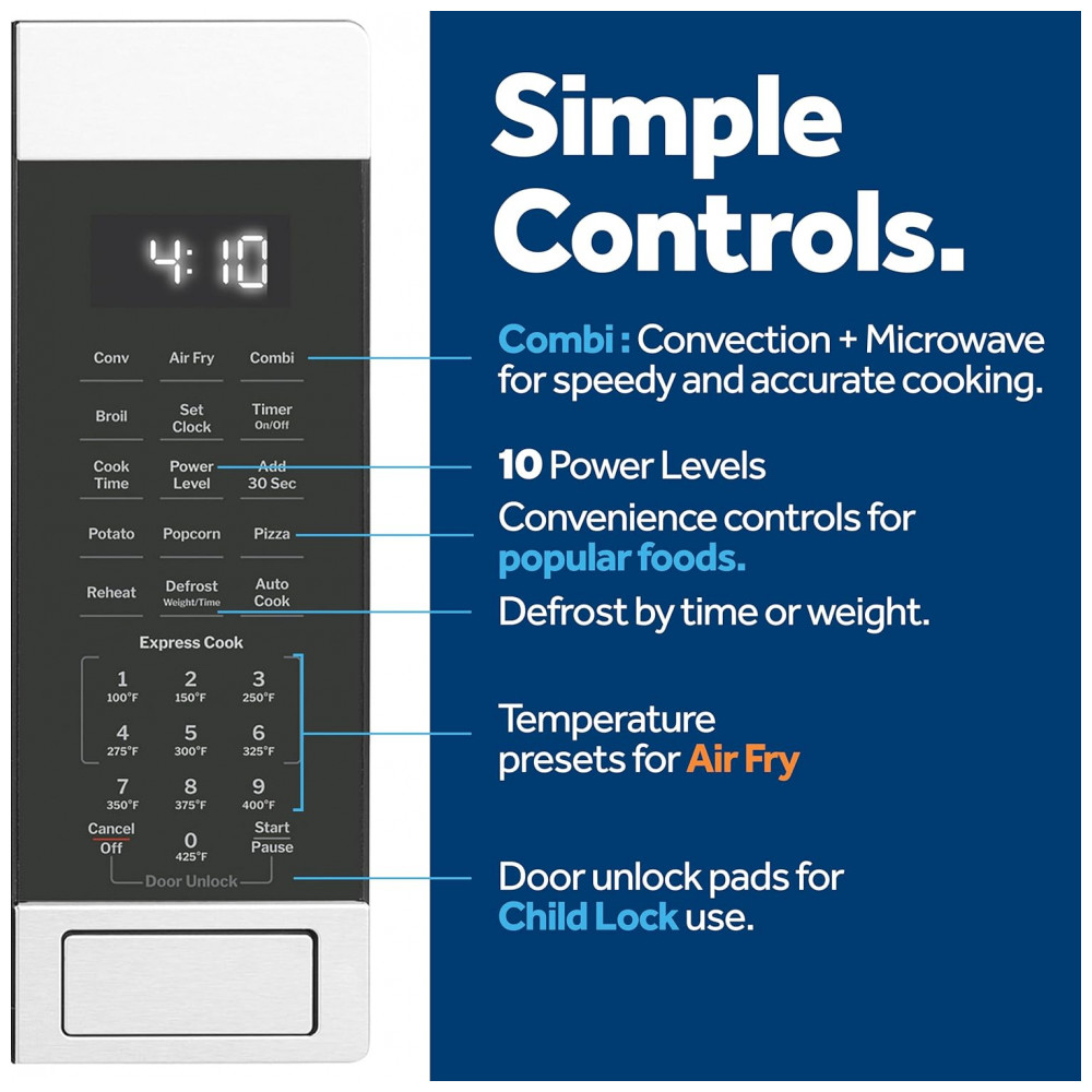 Forno de Micro-ondas GE GCST10A1WSS 4 em 1 1.050 Watts Air Fryer Modo de Convecção para Grelhar Tecnologia ChildLock