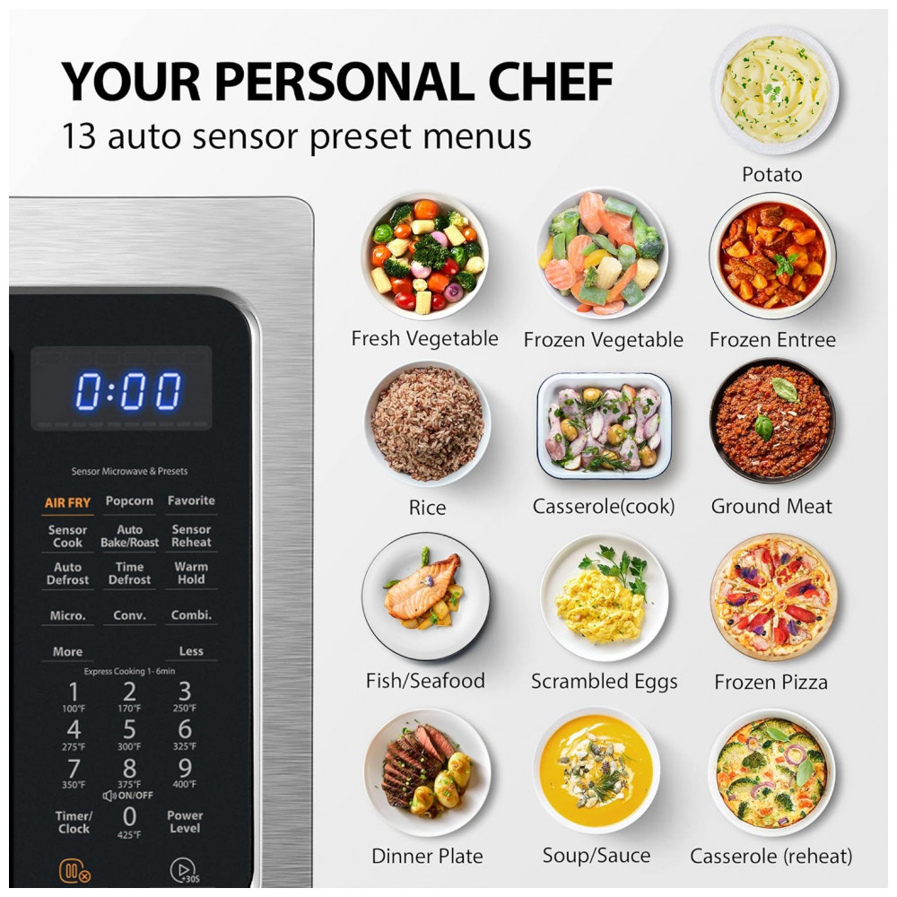 Forno de Micro-ondas Toshiba Air Fryer Combo 4 em 1 Função de Sensor Inteligente Convecção Memória de Posição Prato Giratório