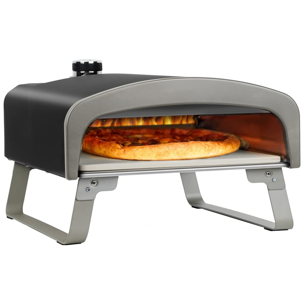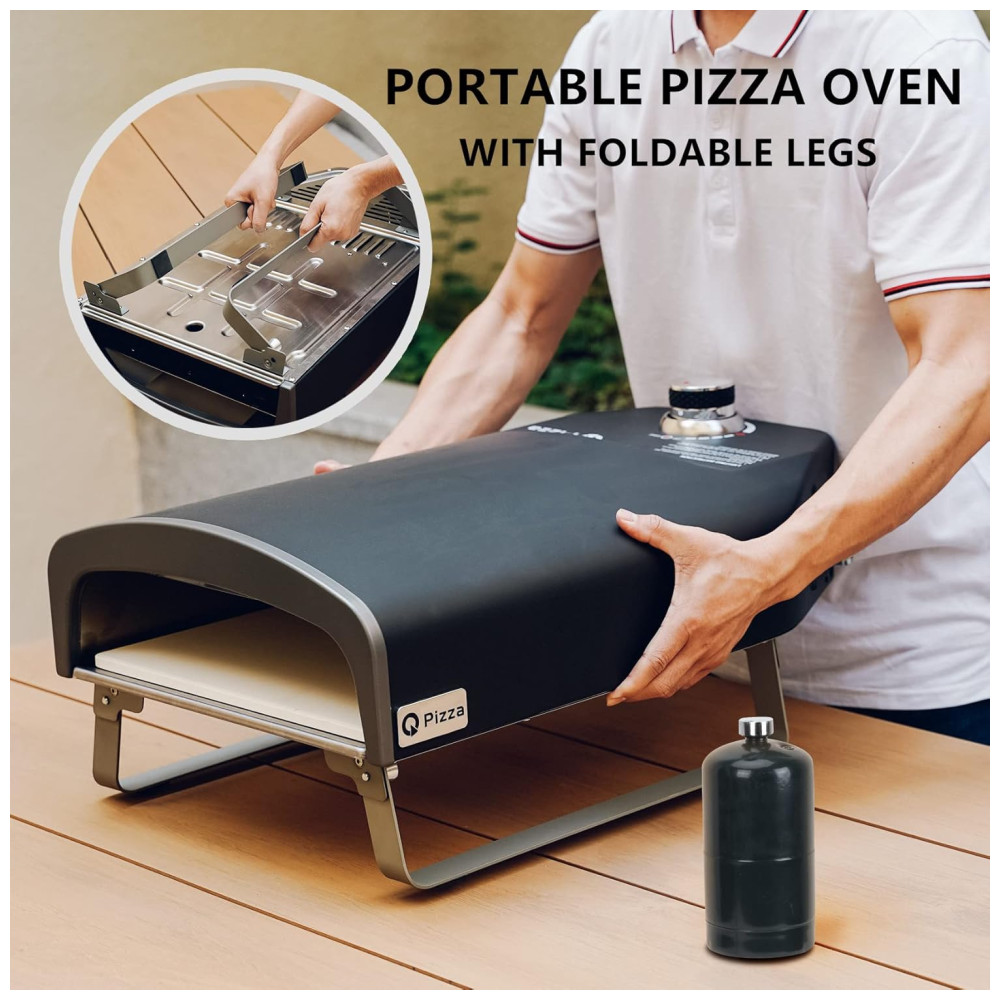 Forno de Pizza a Carvão Portátil Aço Inoxidável com Pedra de Pizza Q Pizza Preto