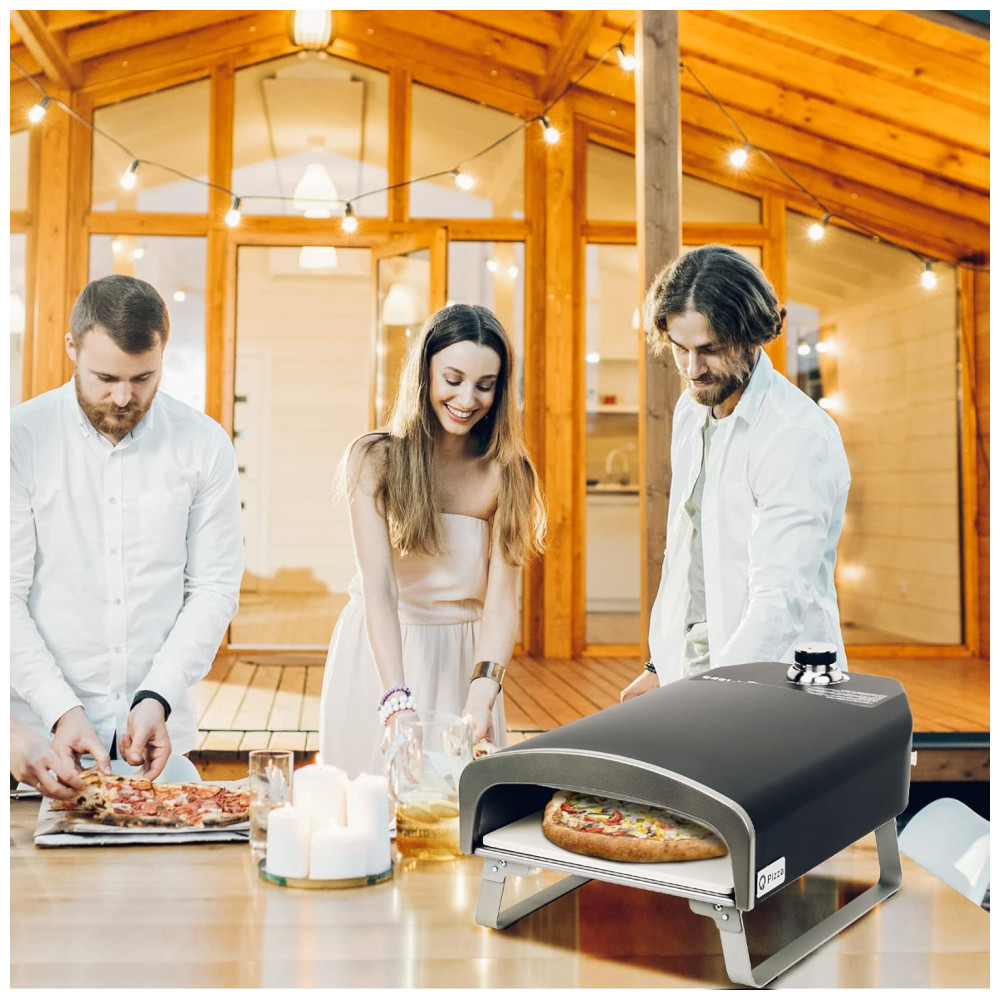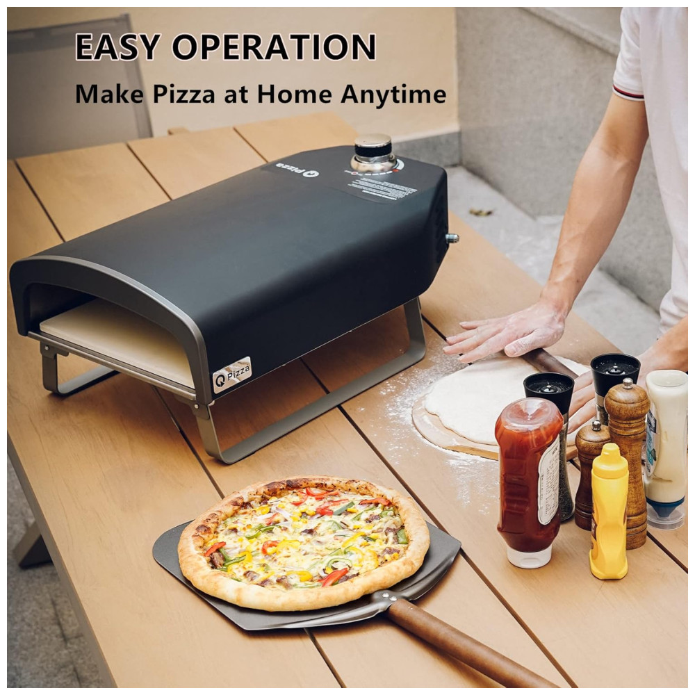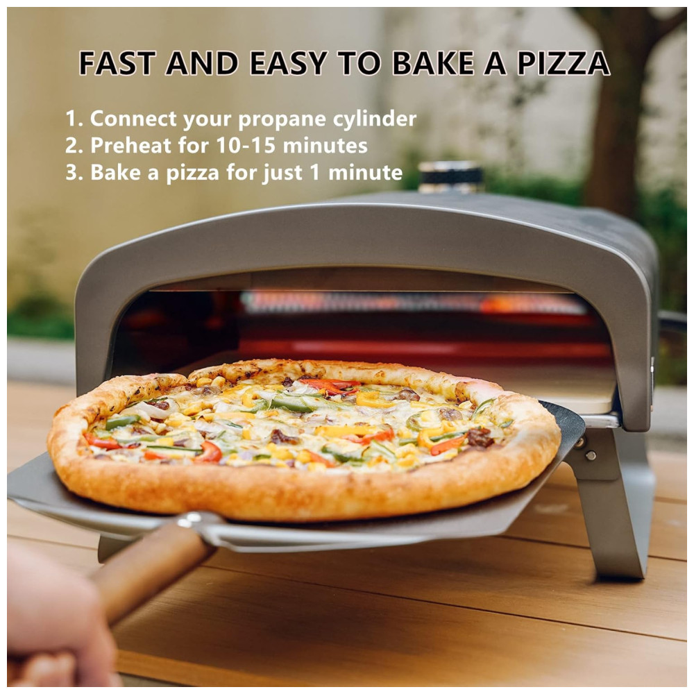 Pré aquecimento rápido de 10 a 15 minutos e cozimento de 1 minuto Conecte um tanque de propano de 9,07 kg e leva cerca de 10 a 15 minutos para pré aquecer e, quando a temperatura atingir 500 graus Celsius 932 graus Fahrenheit, a pizza pode ser assada em um minuto. O que significa que você pode preparar várias pizzas com antecedência e assar todas em poucos minutos. Gaste menos tempo para assar e mais tempo para saborear o delicioso.