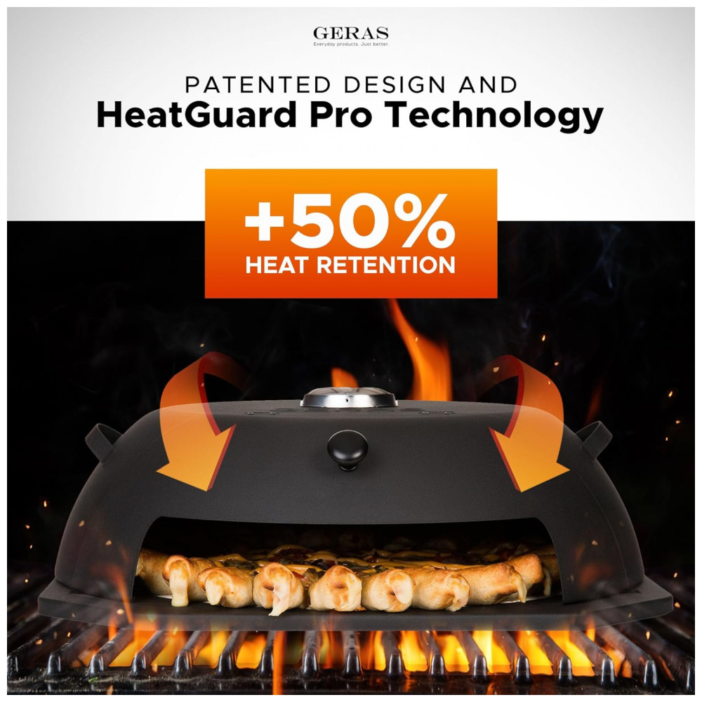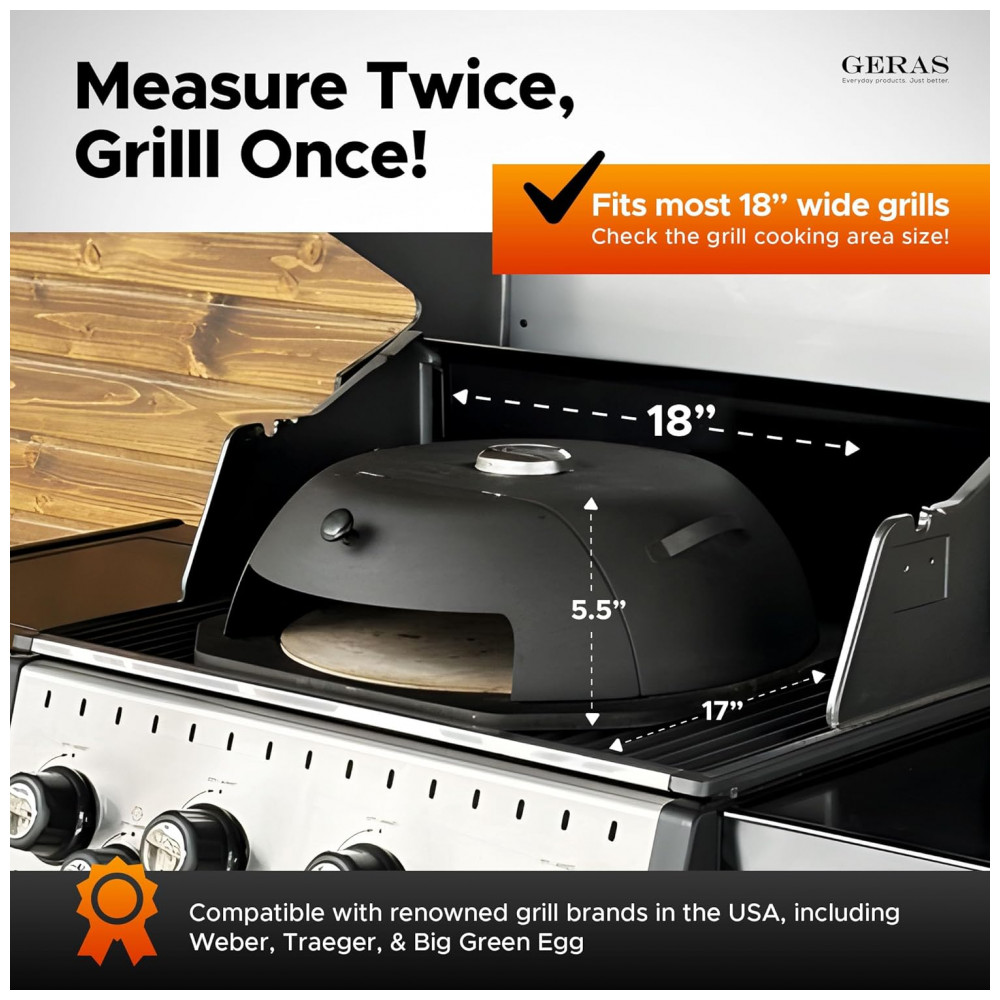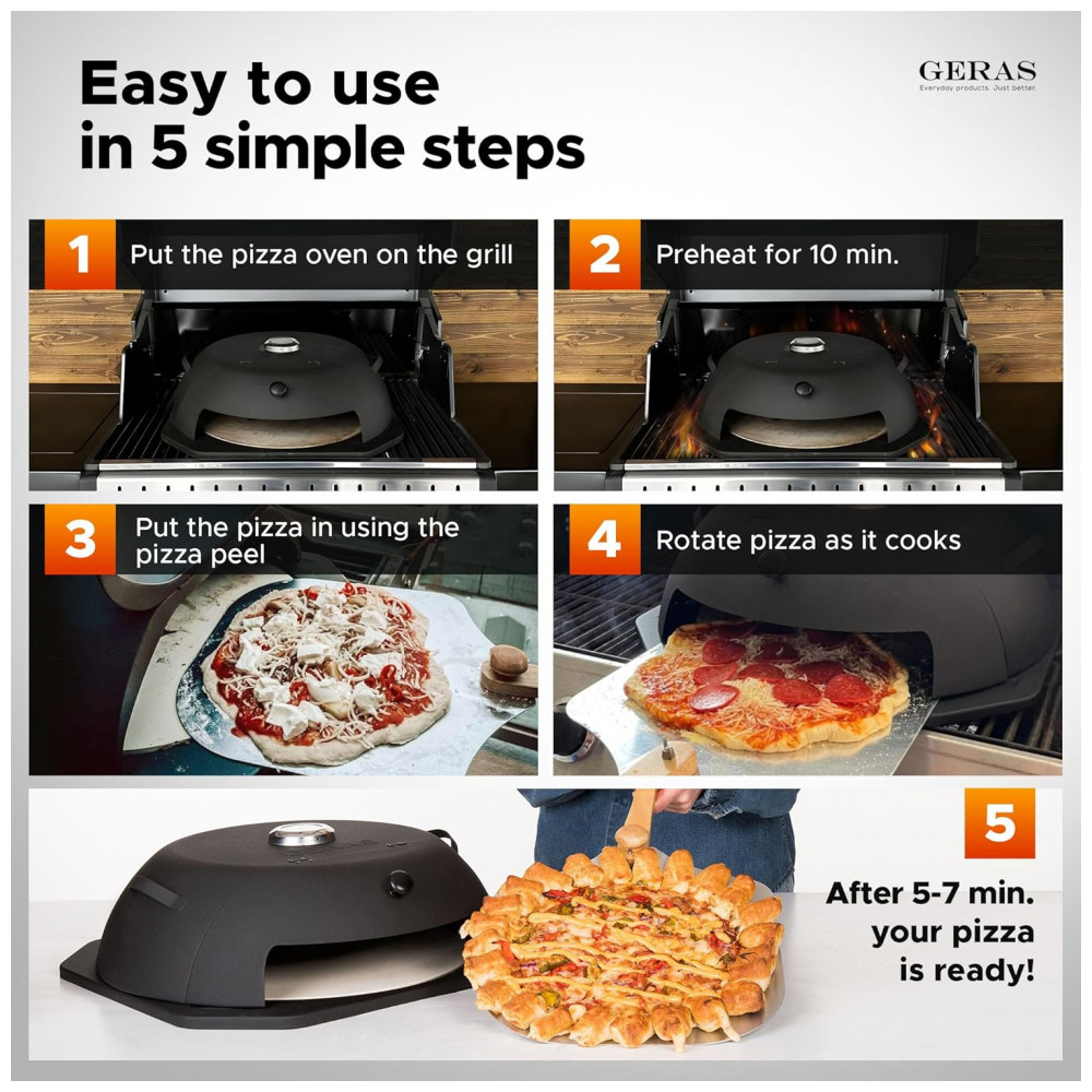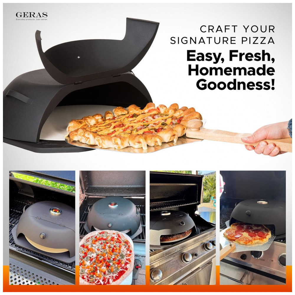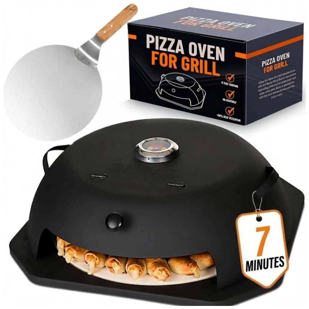 PATENTEADO KIT DE FORNO DE PIZZA PROFISSIONAL AO AR LIVRE Desfrute do sabor de uma pizza no forno a lenha no conforto da sua casa com o nosso kit de forno de pizza Adequado para a maioria das grelhas a gás ou grelha a carvão, este forno de pizza com grelha faz uma pizza melhor do que um forno de fogão.