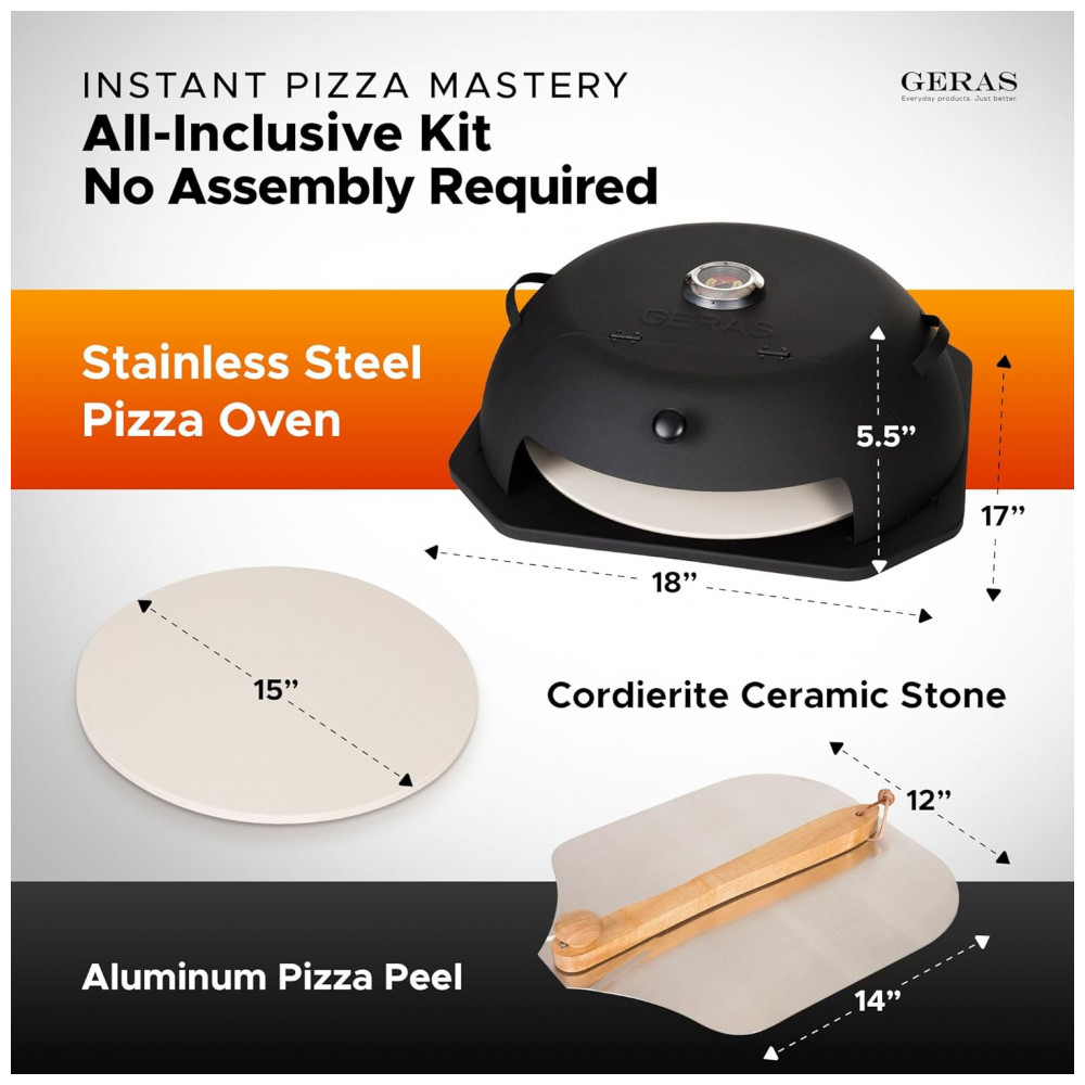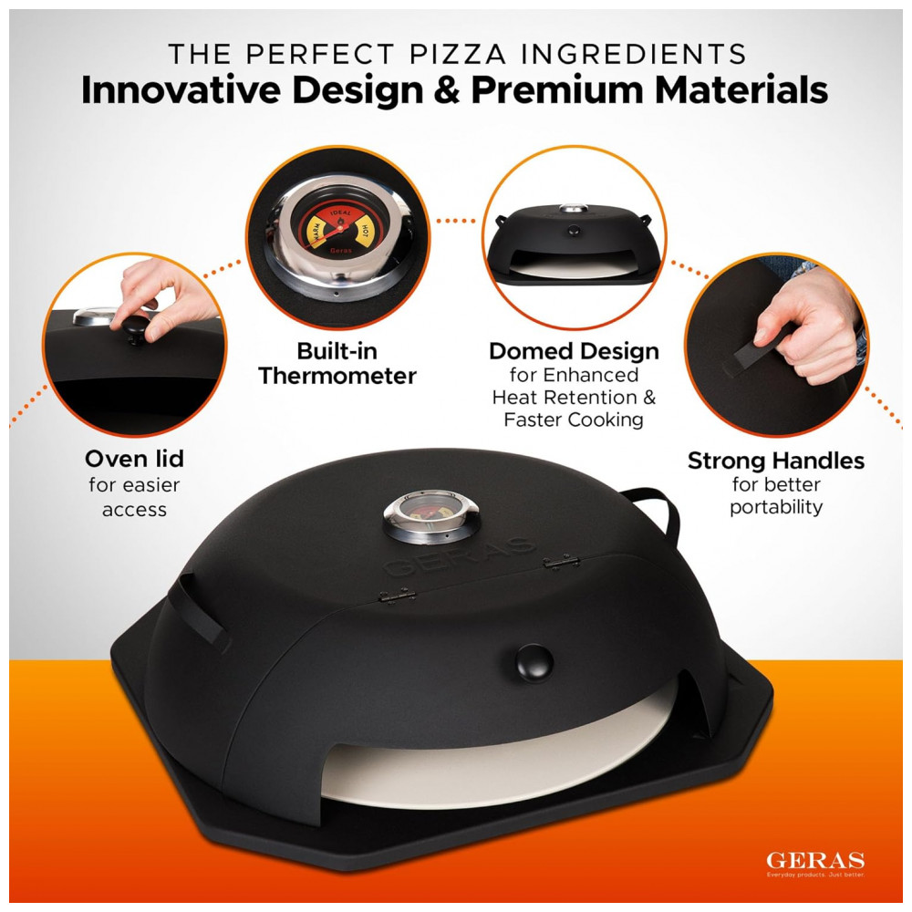 Forno de Pizza a Carvão Portátil com Pedra de Pizza Geras Preto