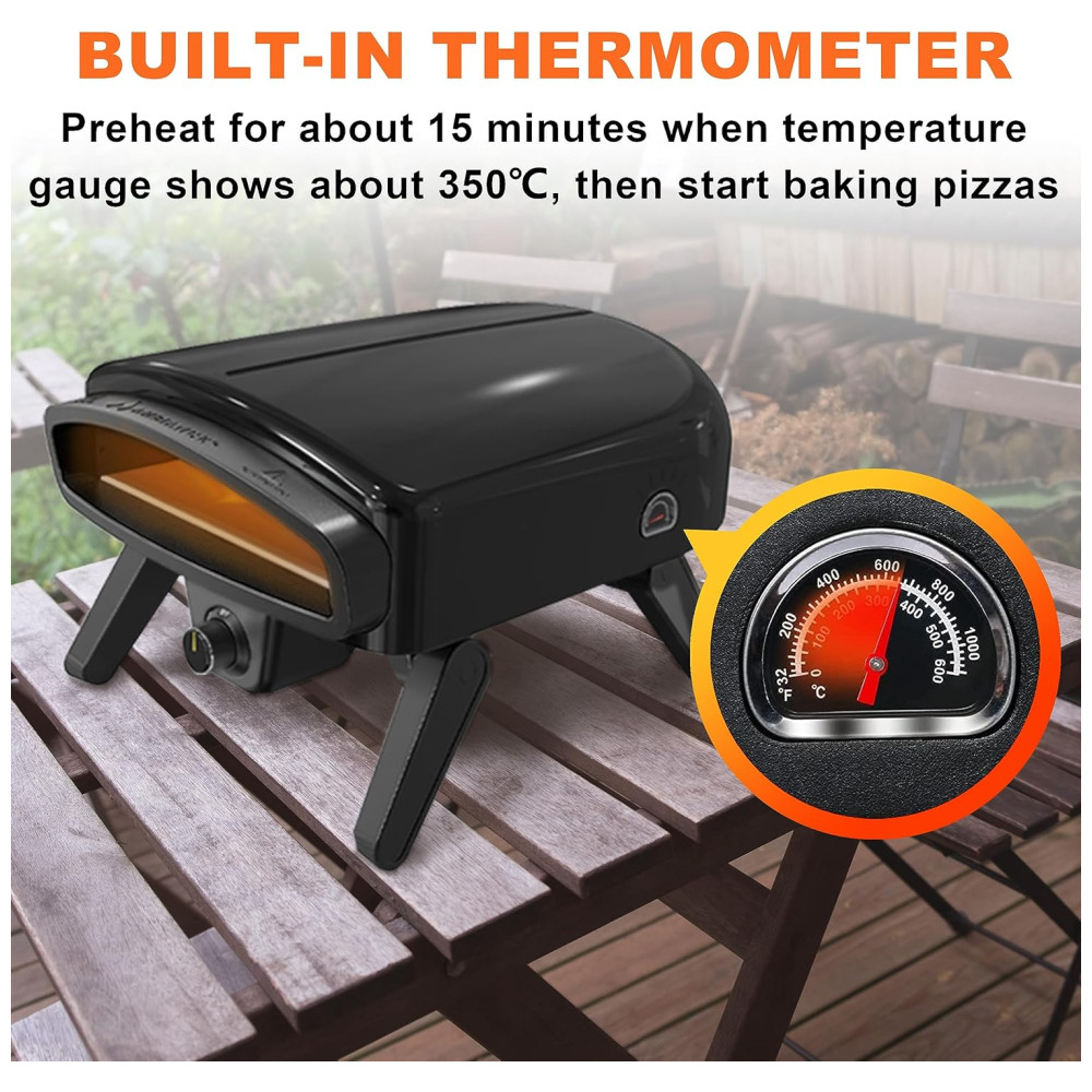Forno de Pizza a Gás Externo Portátil com Termômetro Embutido em Aço Inoxidável Maharlika Preto