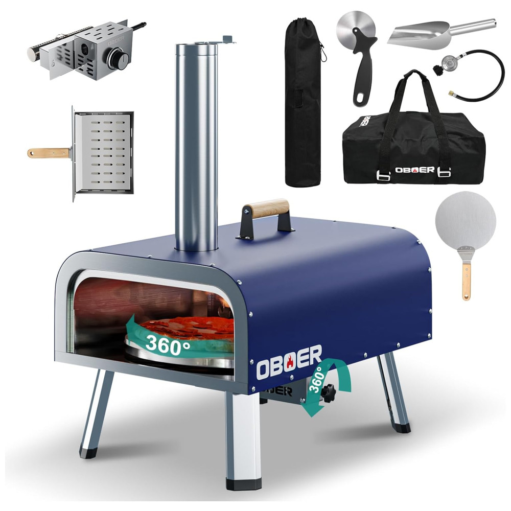 Forno de Pizza a Gás Portátil Aço Inoxidável com Queimador de Gás Pedra de Pizza de madeira Casca de Pizza e Bolsa de Transporte NAIZEA Azul