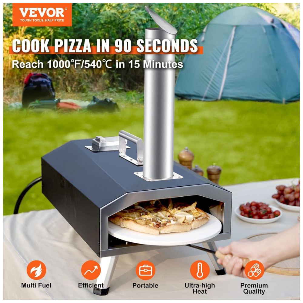 Forno de Pizza a Gás Portátil com Capa de Transporte e Pedra Giratória Automática VEVOR Preto