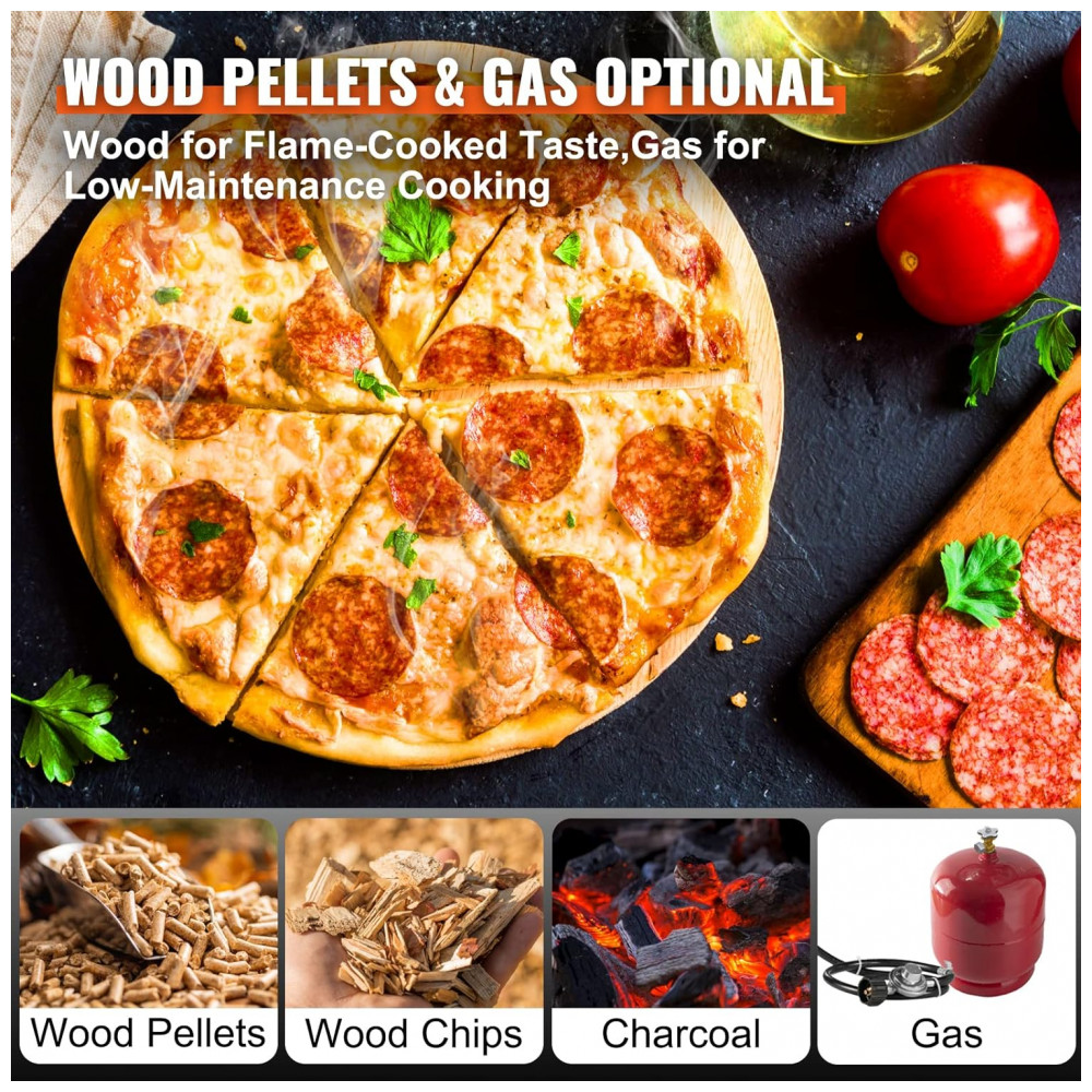 Mais opções de combustível nosso forno de pizza portátil é projetado com queimadores de madeira e gás, para que você possa usar pellets de madeira, lascas de madeira, carvão ou gás como combustível. Escolha madeira para um sabor aromático e defumado ou gás para cozinhar com pouca manutenção. Com sua grande bandeja de combustível de 480 g, você precisará alimentá lo com menos frequência.