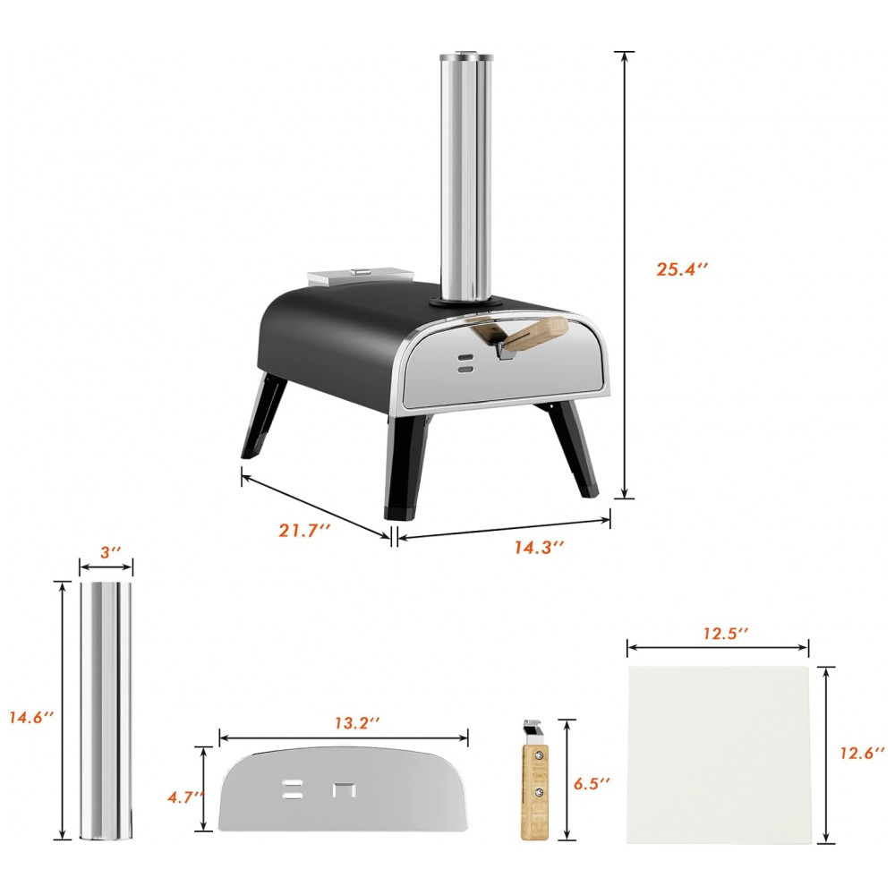 Forno de Pizza a Lenha Portátil Aço Inoxidável Aidpiza SP120 Preto