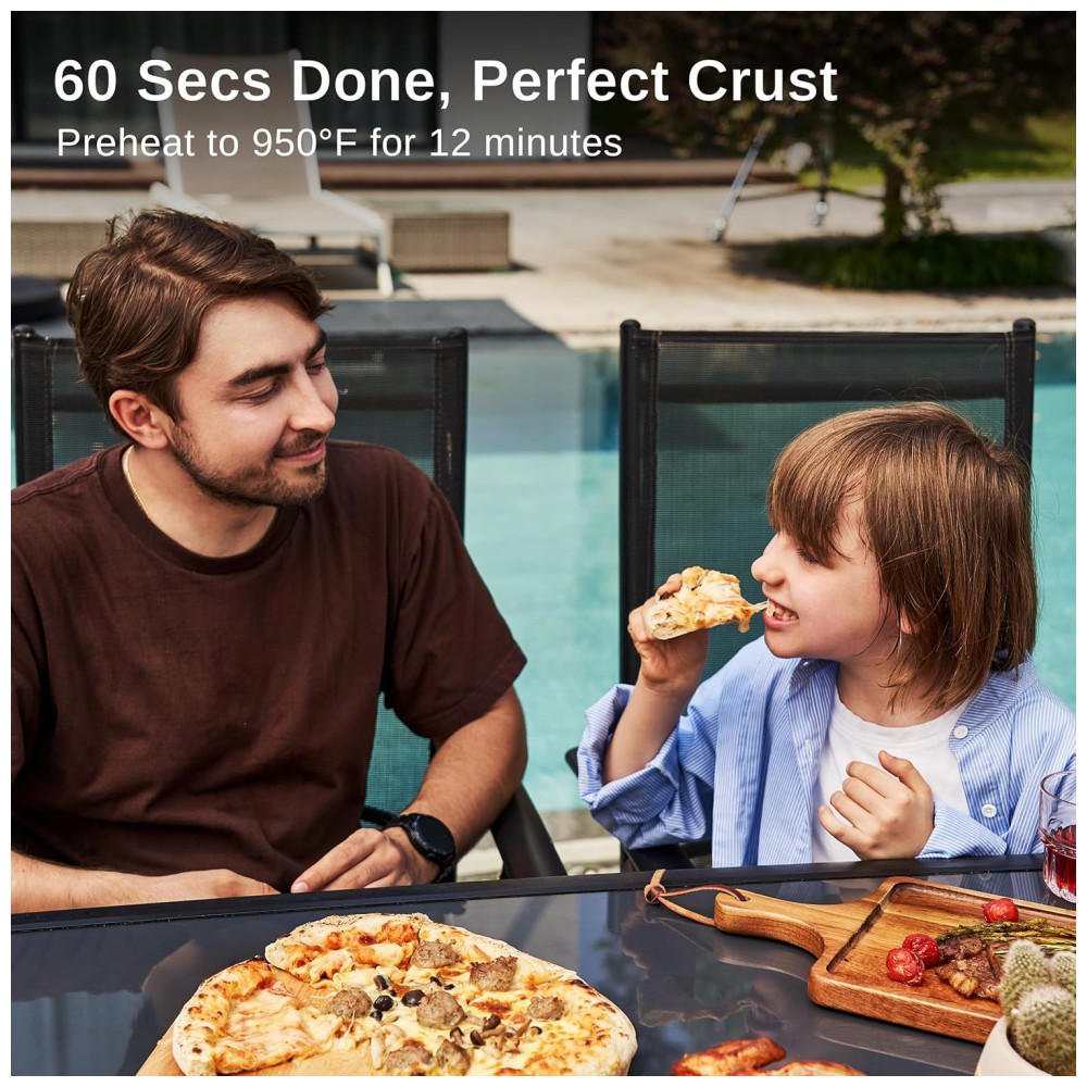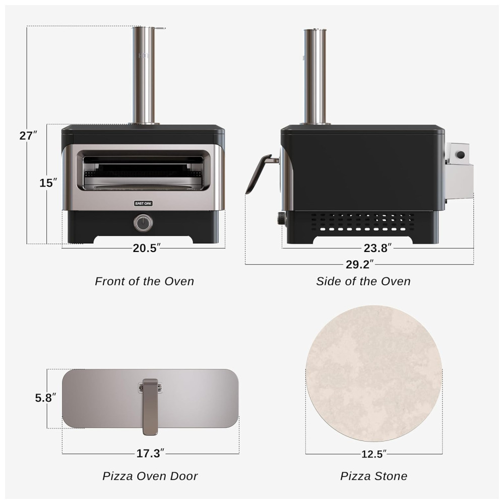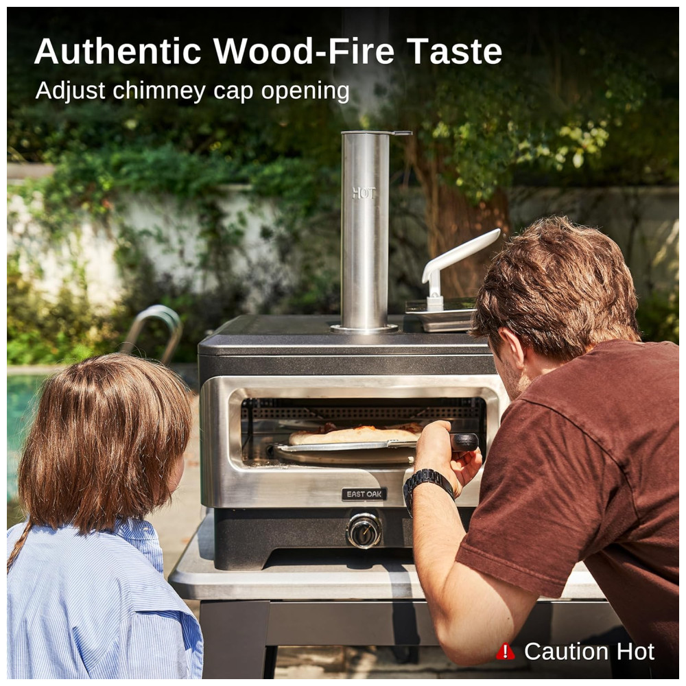 Rápido e eficaz, o forno EAST OAK pré-aquece a 343 ºC em poucos minutos com a porta fechada, garantindo uma deliciosa pizza artesanal ou outras iguarias em apenas 60 segundos ou menos após a ignição.
