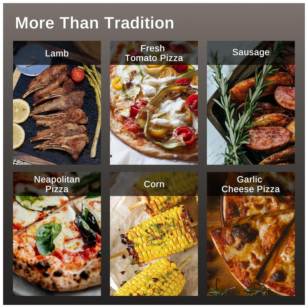 Este versátil forno vai além das pizzas, atendendo a uma ampla variedade de estilos de cozinha. Perfeito para grelhar bifes, costeletas de cordeiro, asas de frango e legumes, ele satisfaz diversas preferências de sabor, tornando-se um item essencial para os amantes da culinária ao ar livre.
