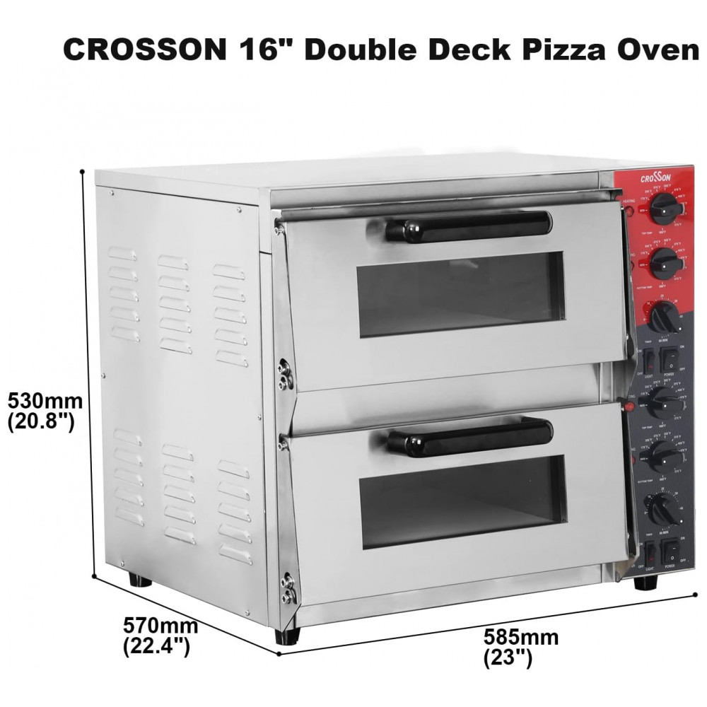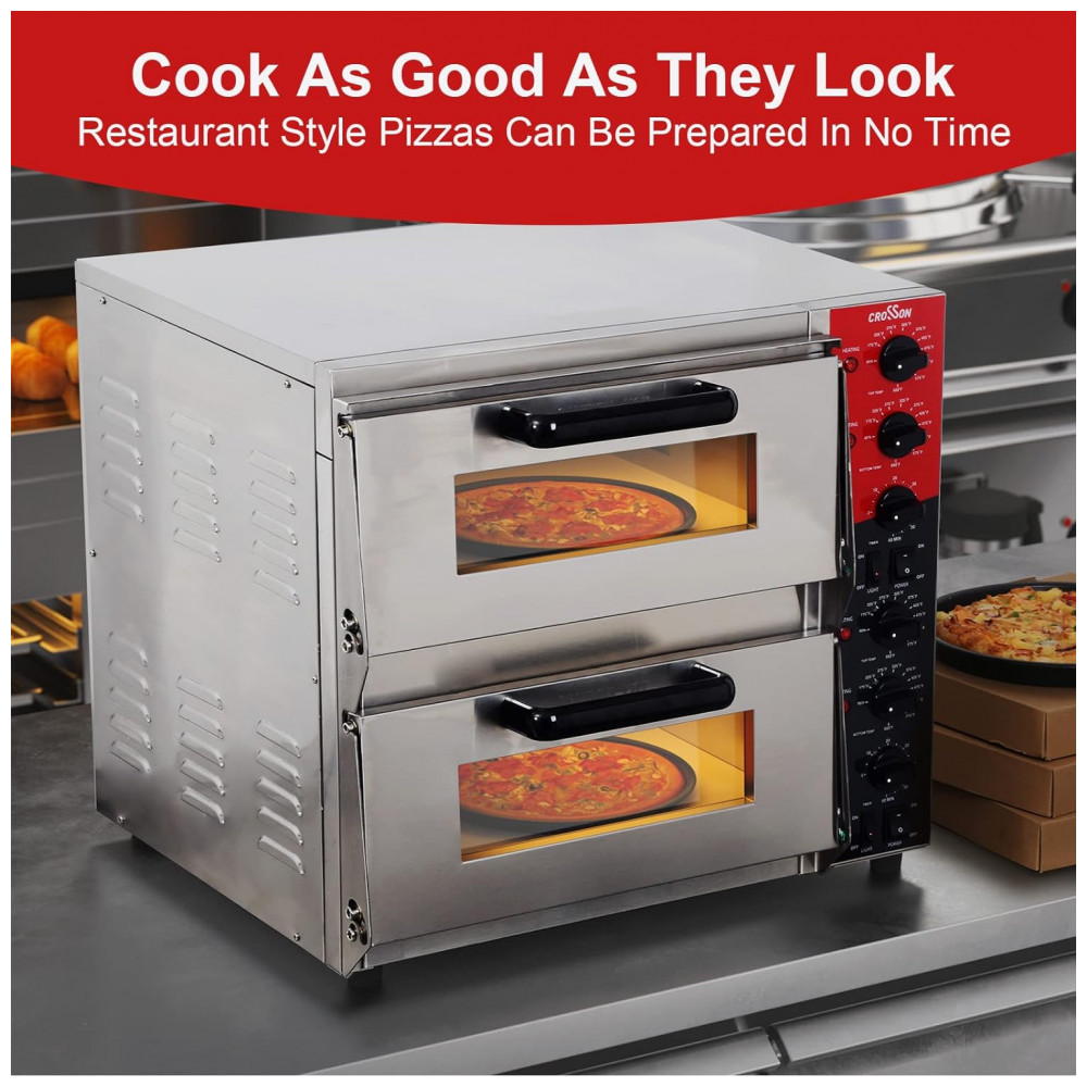 Forno de Pizza Elétrico Duplo Profissional com Controle de Temperatura 110V 3200W Crosson Prata