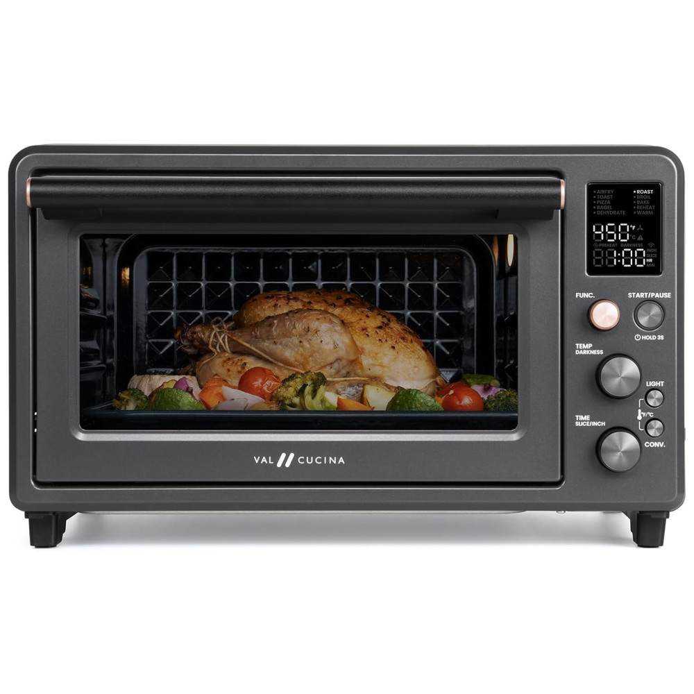 Forno Elétrico 10 em 1 com Capacidade de 24L Aquecimento Infravermelho e Interior Revestido de Esmalte Não Tóxico 110V 1650W VAL CUCINA Preto