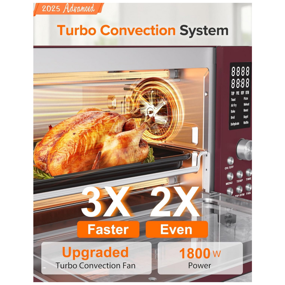 O ventilador e a carcaça totalmente reformulados em 2024 oferecem uma velocidade 100% maior, garantindo um cozimento mais rápido e resultados irresistivelmente crocantes e dourados.