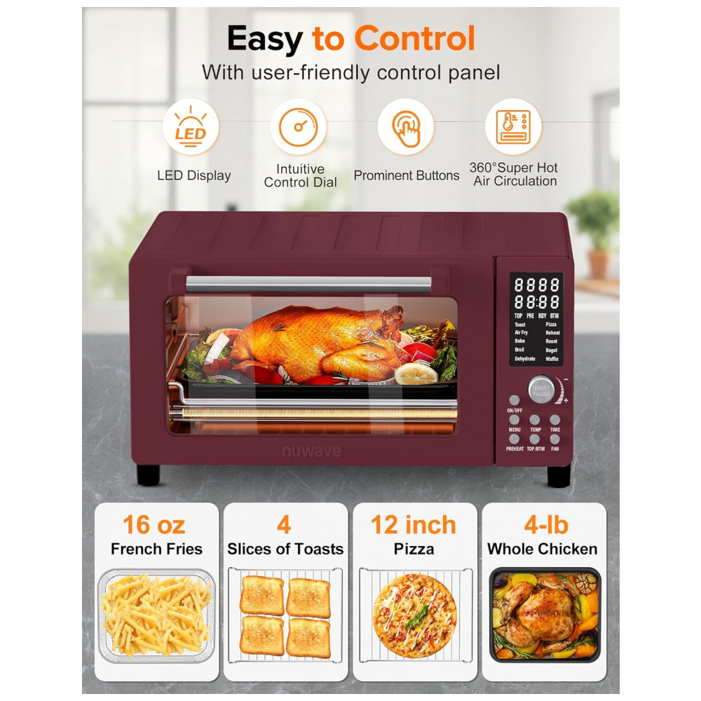 Forno Elétrico 12 em 1 com Capacidade de 19L Material de Aço Inoxidável e Tela LCD 110V 1800W Nuwave Vermelho Canela