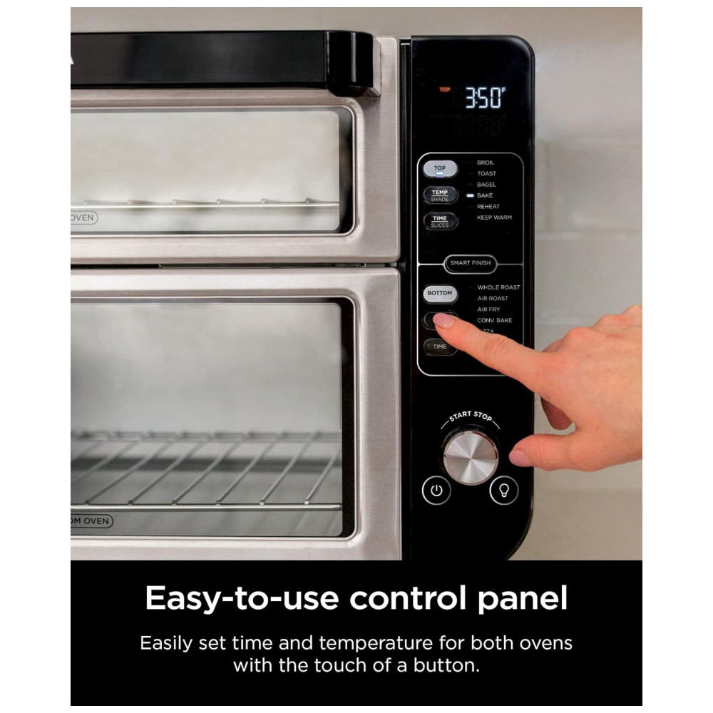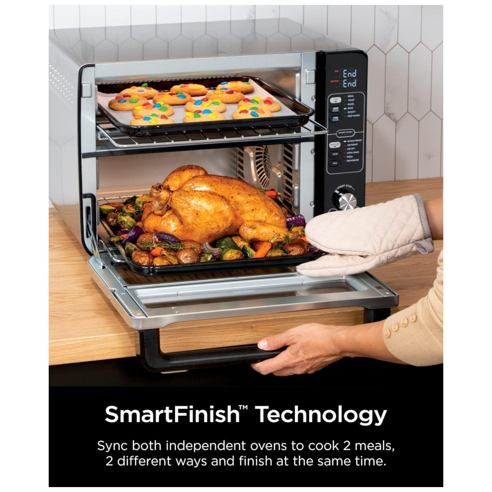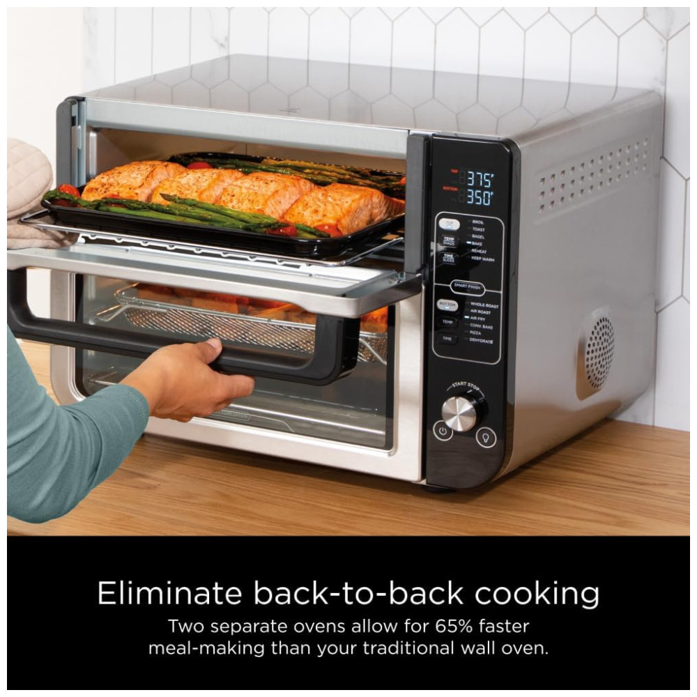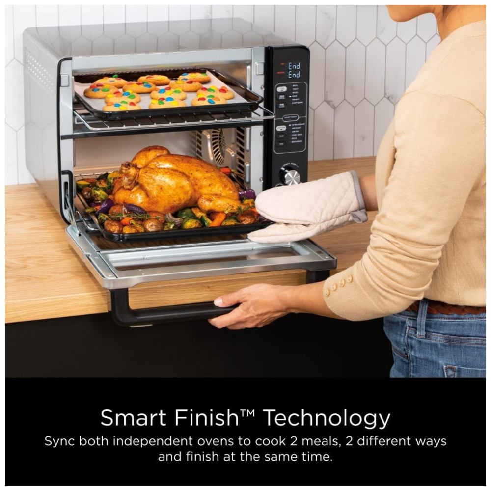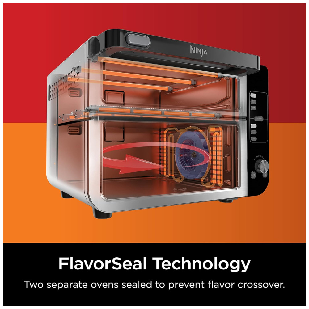 Forno Elétrico 12 em 1 com FlexDoor FlavorSeal Material de Aço Inoxidável Forno Duplo e Tela LCD 110V 1800W Ninja DCT401 Prata