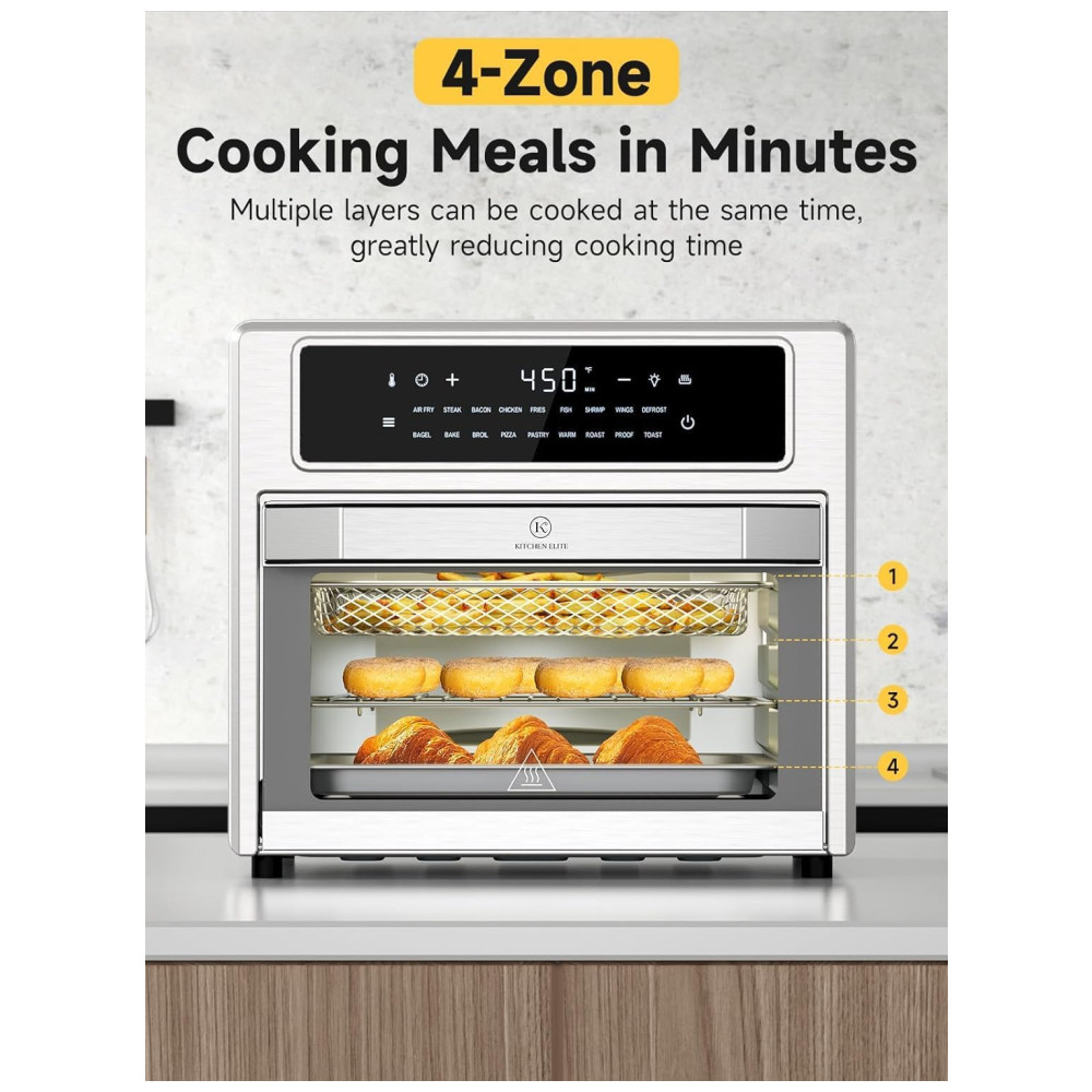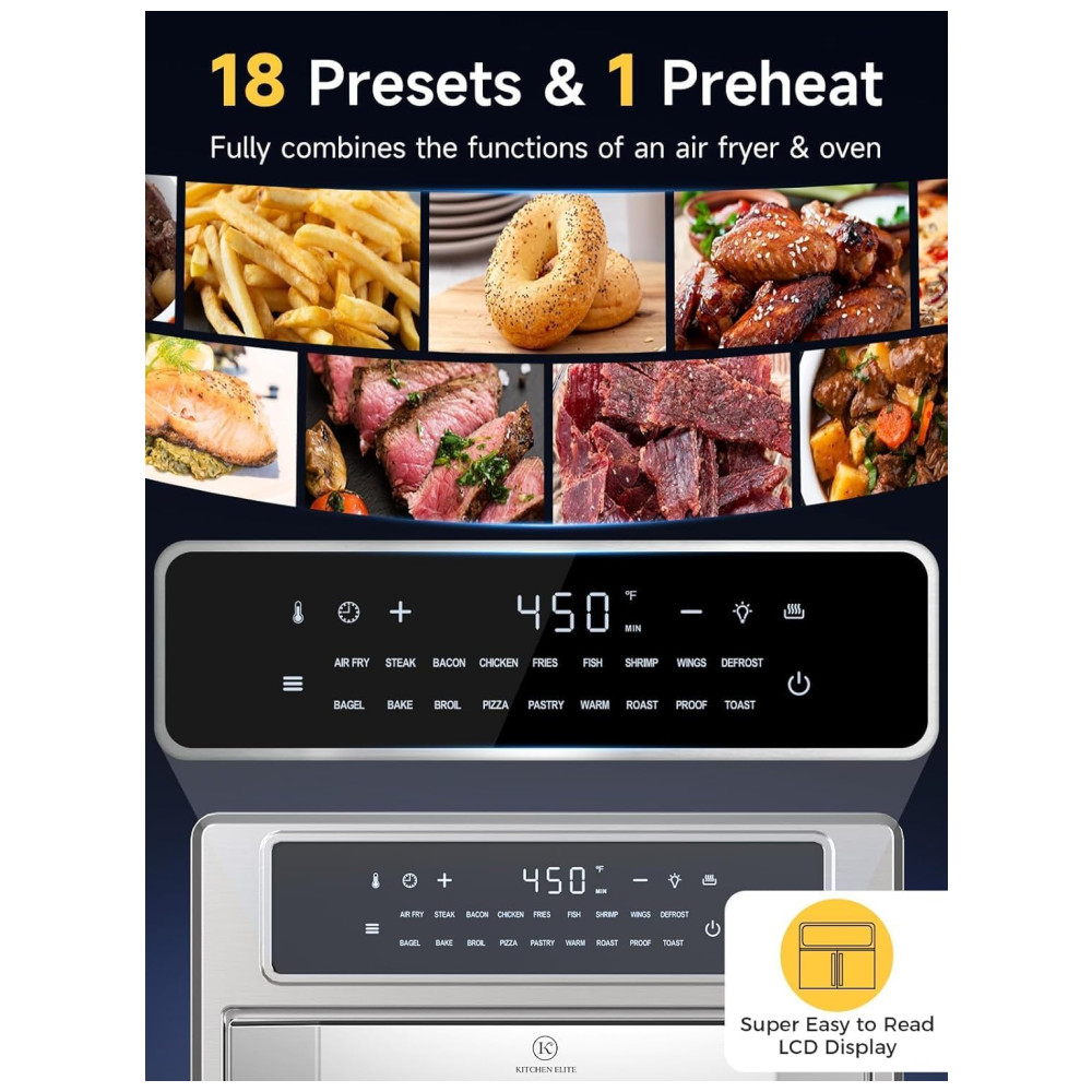 Forno Elétrico 18 em 1 com Capacidade de 25L Material de Aço Inoxidável Recursos de Zona Dupla e Tela Digital 110V 1700W Kitchen Elite Prata
