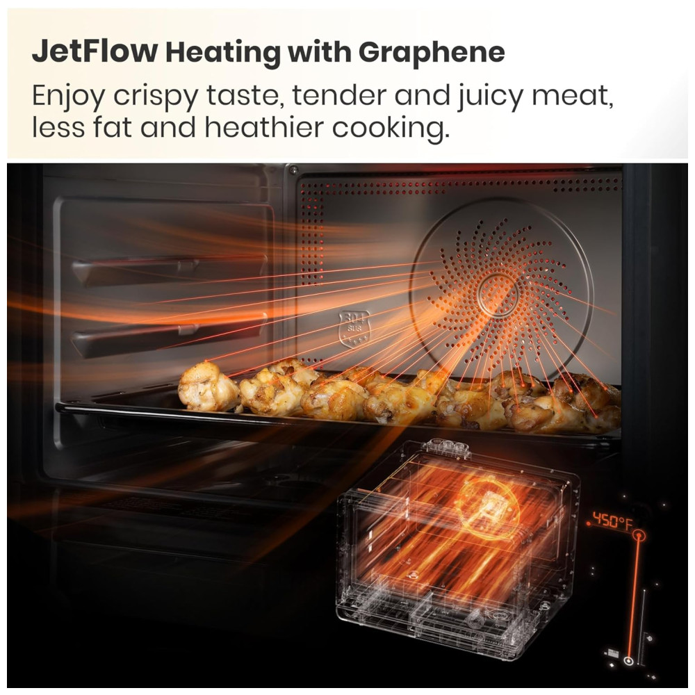Vaporização Aprimorada de Forma Saudável e Eficiente: Utilizando as tecnologias Steam-Torrent*, Encircling-Convection* e controle de temperatura em tempo real, este forno oferece funções de vaporização alta e média. Ele garante um cozimento eficiente e saudável, preservando o frescor, os nutrientes e o sabor dos alimentos, ao mesmo tempo que economiza tempo e energia.