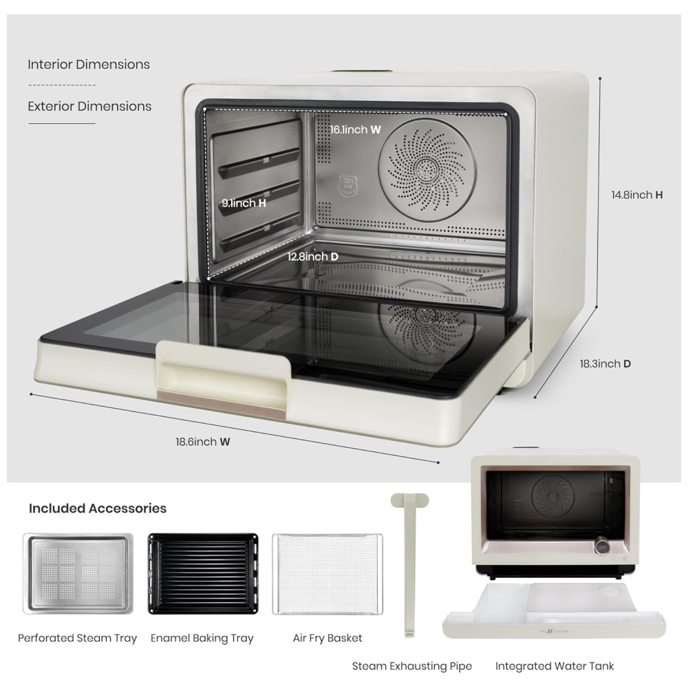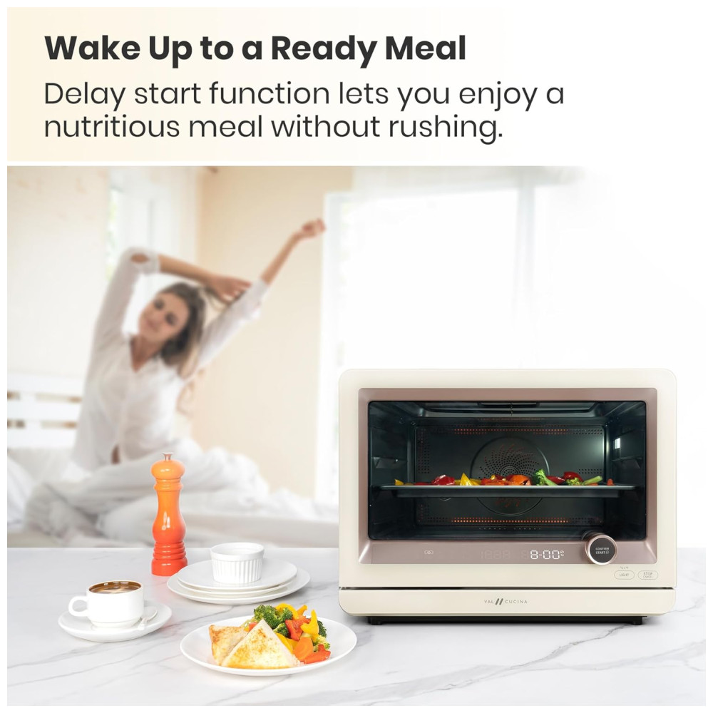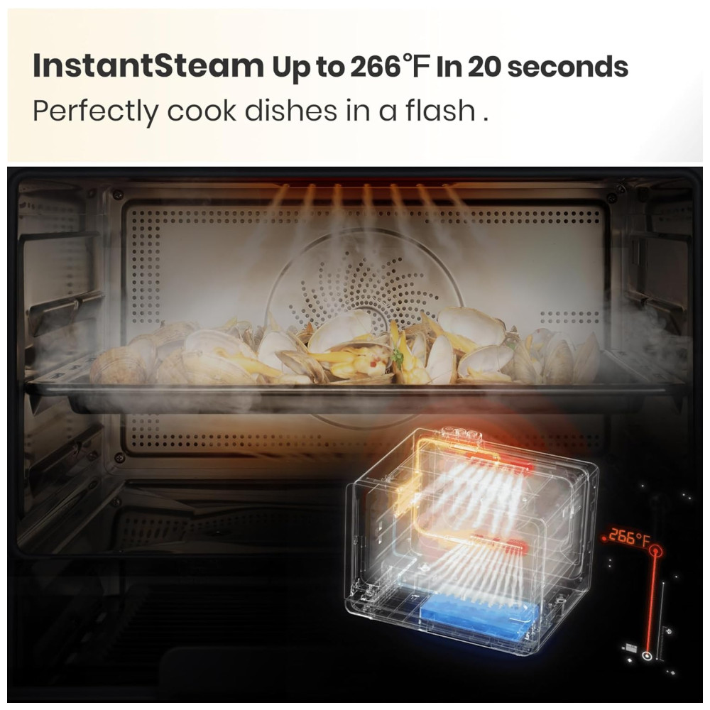 Forno a Vapor Versátil Tudo-em-Um: Desfrute de uma infinidade de opções de cozimento, incluindo cozimento a vapor, fritura a ar, cozimento, sous vide, fermentação, 29 menus automáticos predefinidos e higienização, tudo em um forno a vapor de bancada. Oferece conveniência e versatilidade incomparáveis na cozinha, ideal para quem busca praticidade e inovação.