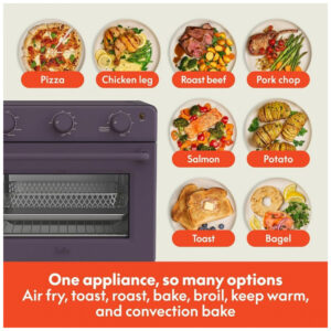 Forno Elétrico Air Fryer 7 em 1 15L 1700W Porta Vidro Temperado Timer 60min Controle Manual Acessórios Inox Capacidade para Pizza 30cm Roxo