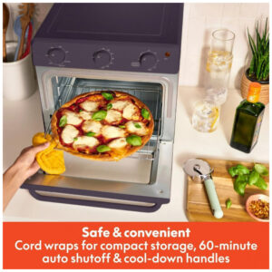 Ideal para preparar até 6 fatias de pão ou pizzas de 30 cm, este forno air fryer alia praticidade, economia de espaço e versatilidade culinária, proporcionando refeições saudáveis e crocantes com menos óleo.