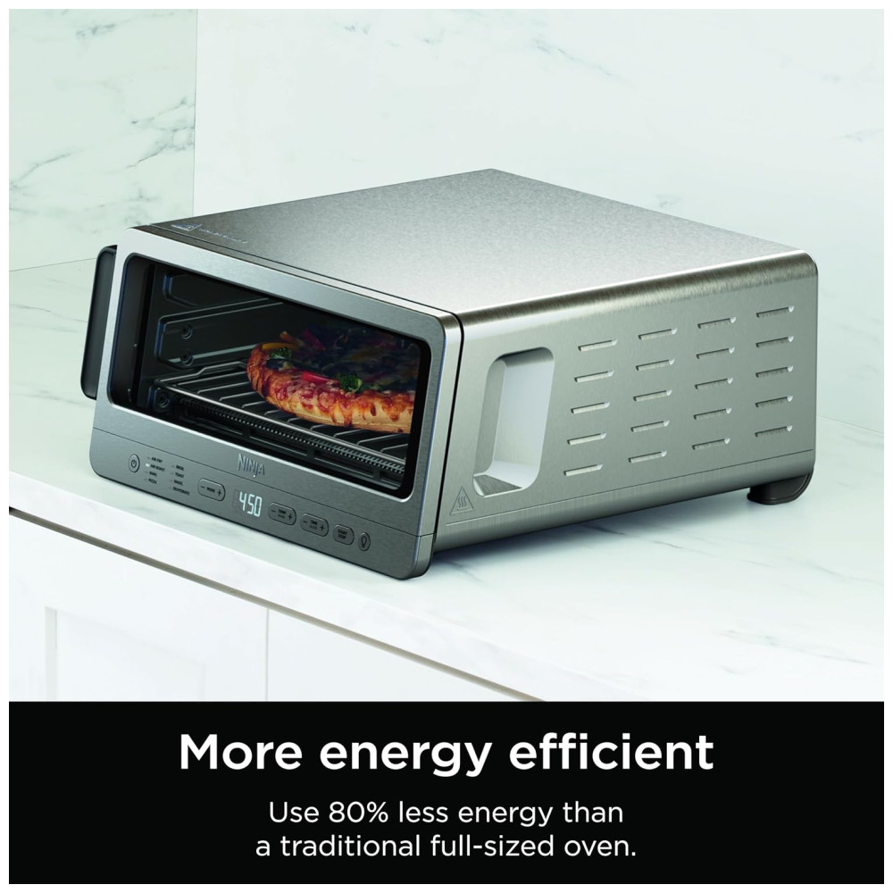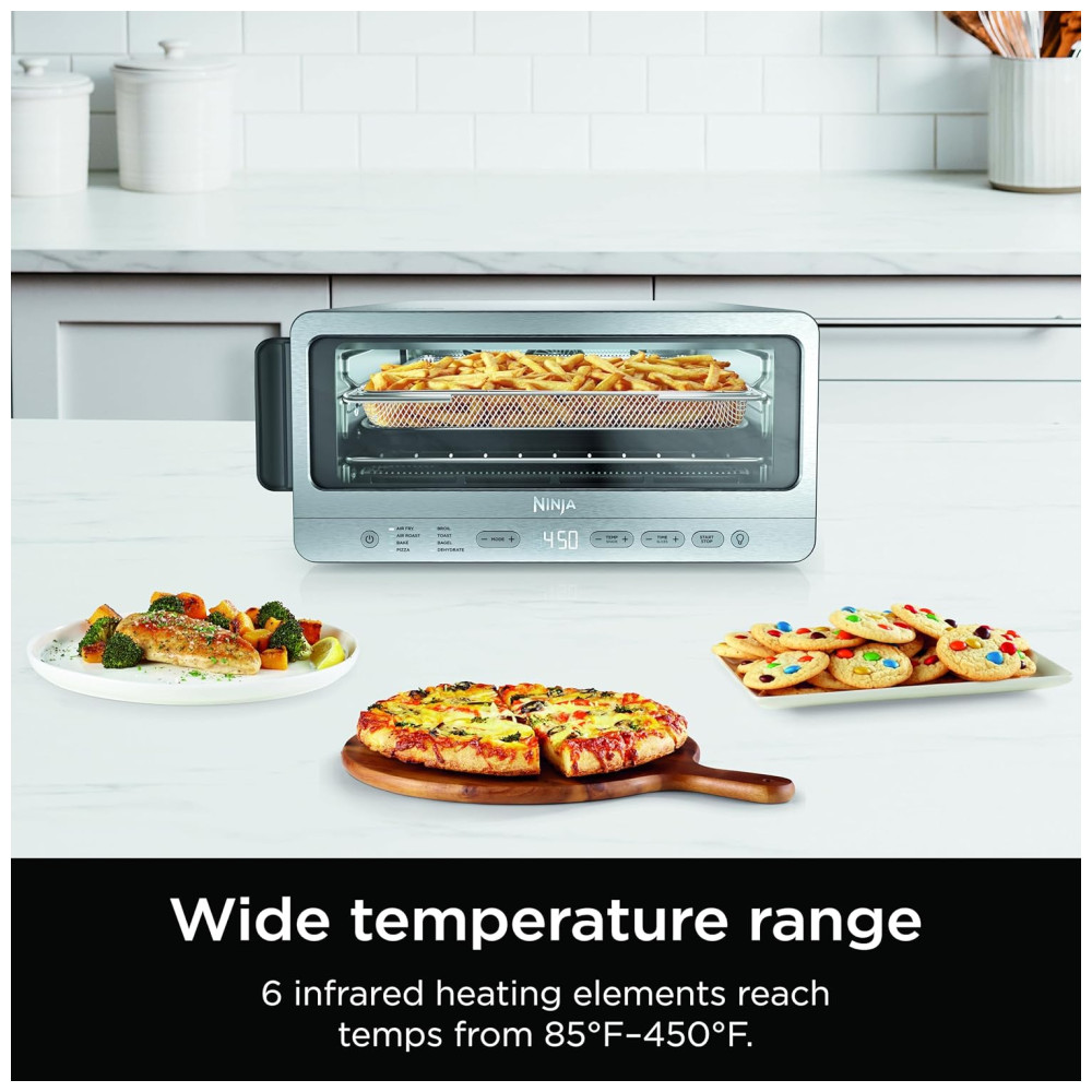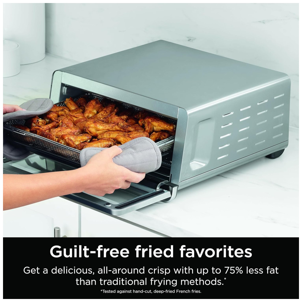 Forno Elétrico Air Fryer 8 em 1 com Menu de Cozimento Automático Prateleira Ajustável Material de Aço Inoxidável e Tela LCD 110V 1800W Ninja Flip SP151 Prata