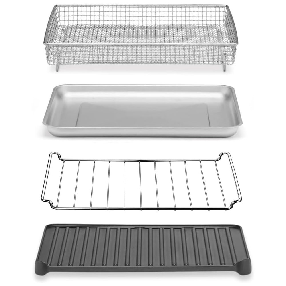 Acessórios inclusos: cesta air fryer, grelha/chapa reversível antiaderente, grade inox, assadeira e bandeja coletora