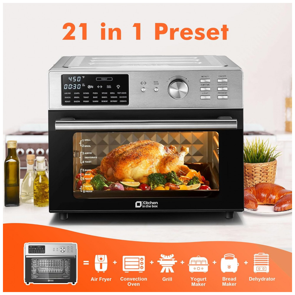 Forno Elétrico Air Fryer Toaster Oven Kitchen in the box Prata 32QT Convecção 21 em 1 Rotisserie 1800W 110V