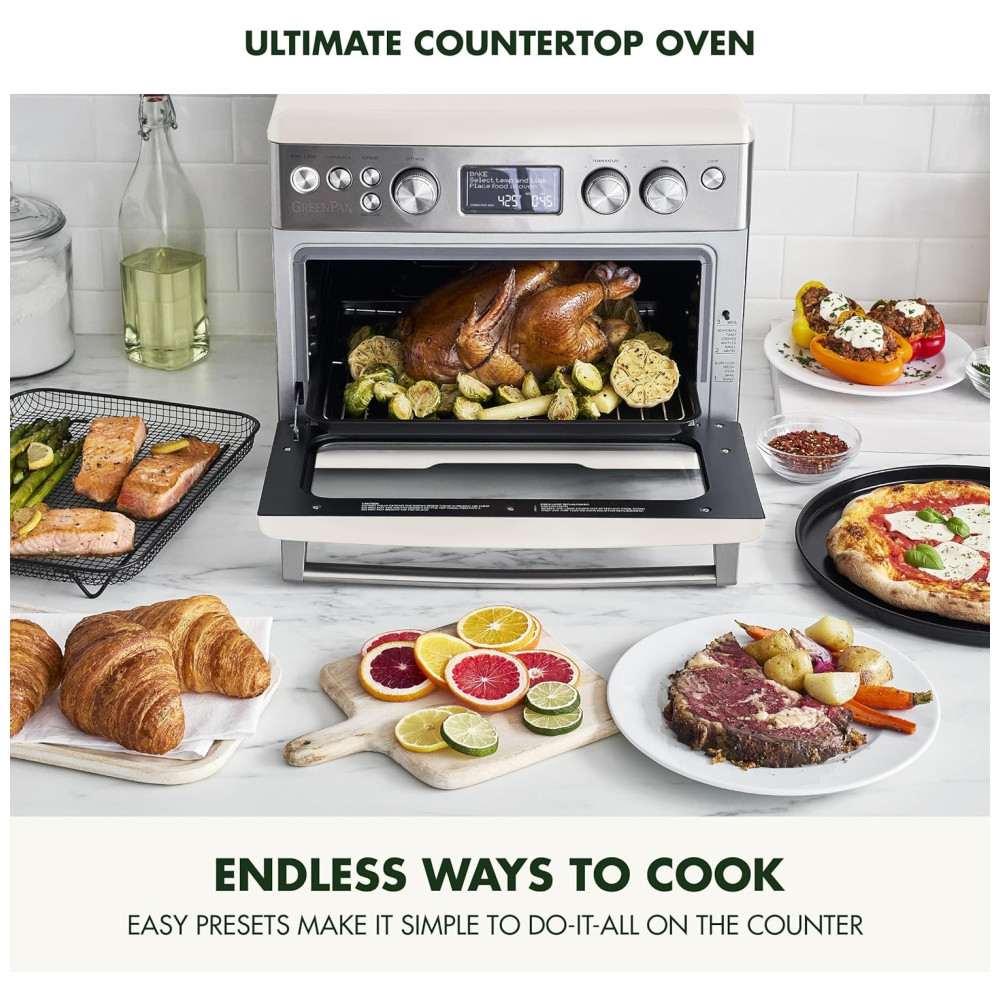 Forno Elétrico com Função Airfryer 13 Predefinições e Interior Antiaderente 110V 1800W GreenPan Creme