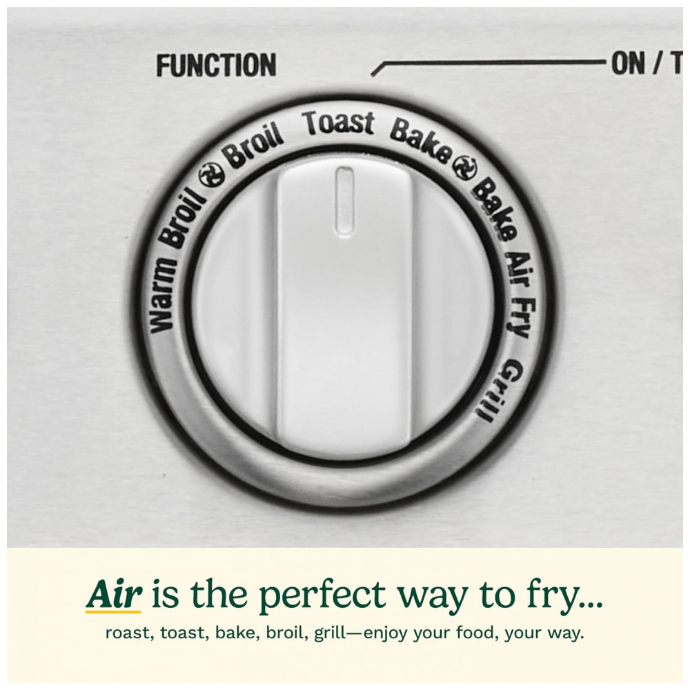 Capacidade Ampla: Perfeito para refeições de todos os tamanhos! Este forno acomoda até 6 fatias de pão, frita ao ar 1,4 kg de asas de frango, assa uma pizza de 30 cm ou prepara um frango inteiro de até 1,8 kg.