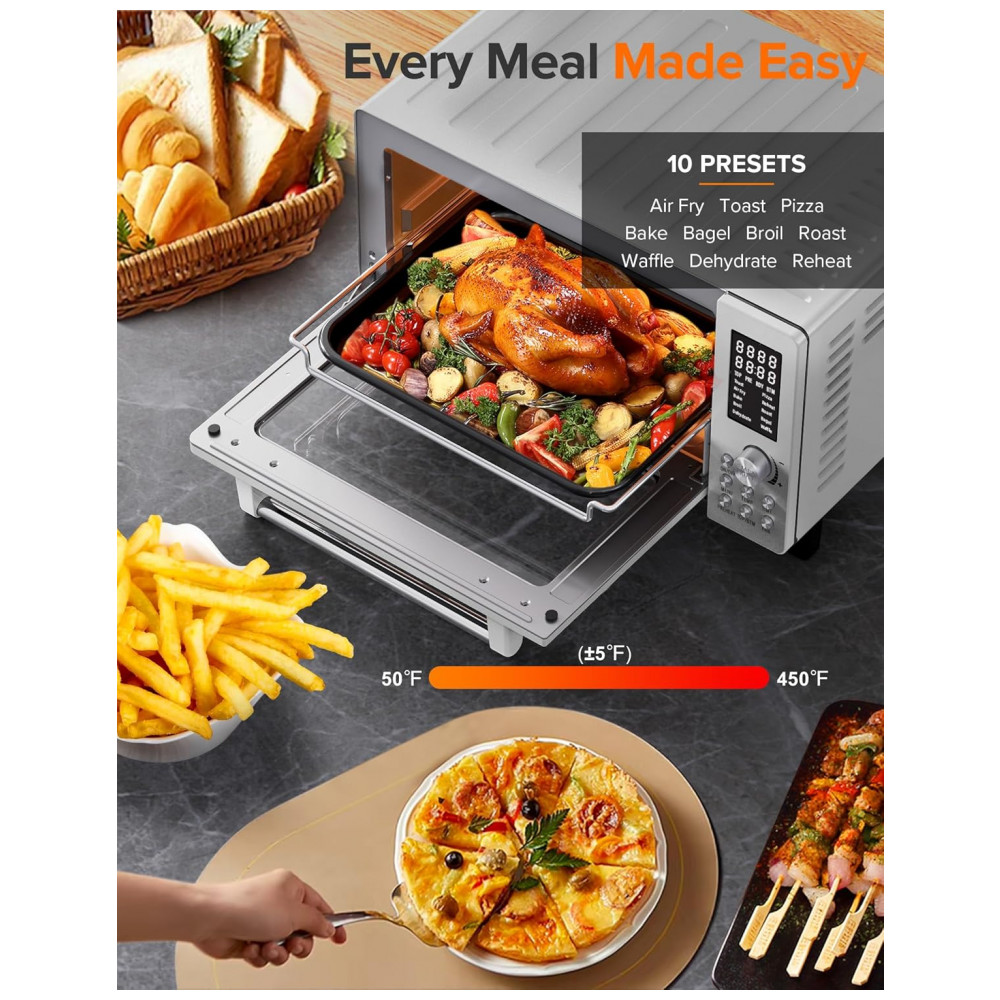 Capacidade Compacta de 20 Litros: Ideal para cozinhas pequenas e motorhomes, seu design compacto permite assar pizzas de até 30 cm, um frango de até 1,8 kg, um assado de 1,8 kg ou até 450 g de batatas fritas. Perfeito para famílias de tamanho médio.