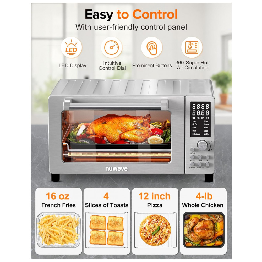 Forno Elétrico de Bancada 12 em 1 19L com Tecnologia Quicker & Even Crisp e Função Air Fryer 110V 1800W Nuwave Prata