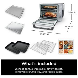 Componentes incluídos 1 bandeja para migalhas, 2 grelhas de arame, 1 cesta para Air Fry, termômetro Pro Cook, 2 assadeiras