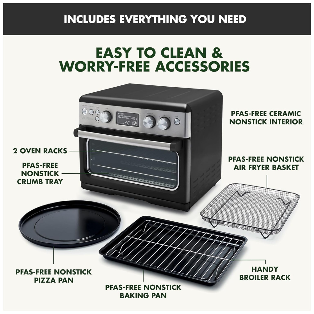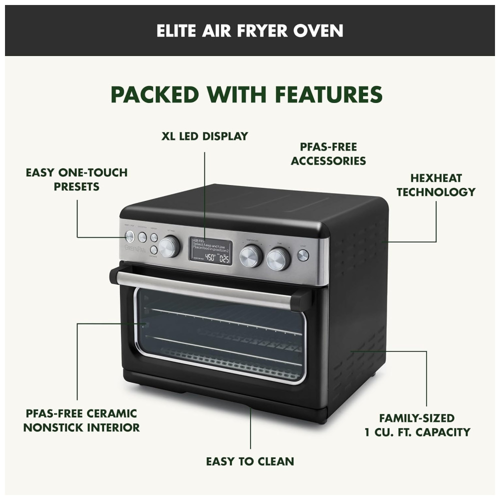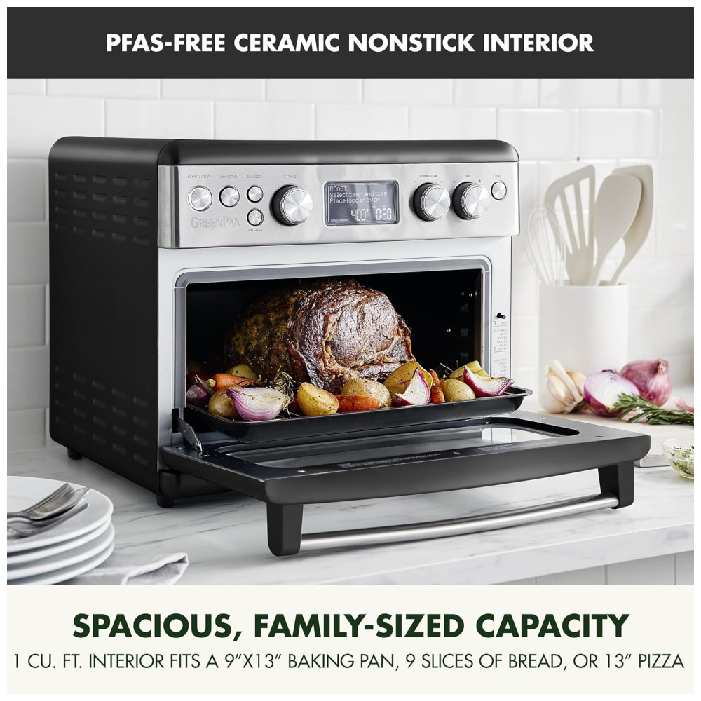 Forno Elétrico de Bancada 13 em 1 28L com Função Air Fryer Bandeja de Cerâmica Antiaderente e Prateleiras Ajustáveis 110V 1800W GreenPan Preto