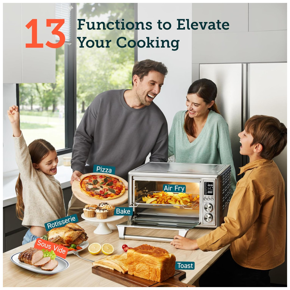 13 Funções Versáteis: Desfrute de um universo de possibilidades em poucos minutos com funções para Air Fry, Assar, Tostar, Assar Lentamente, Grelhar, Rotisseria, Pizza, Bagel, Cookies, Desidratar, Fermentar e manter aquecido. Ideal para facilitar o preparo de diversos tipos de alimentos.