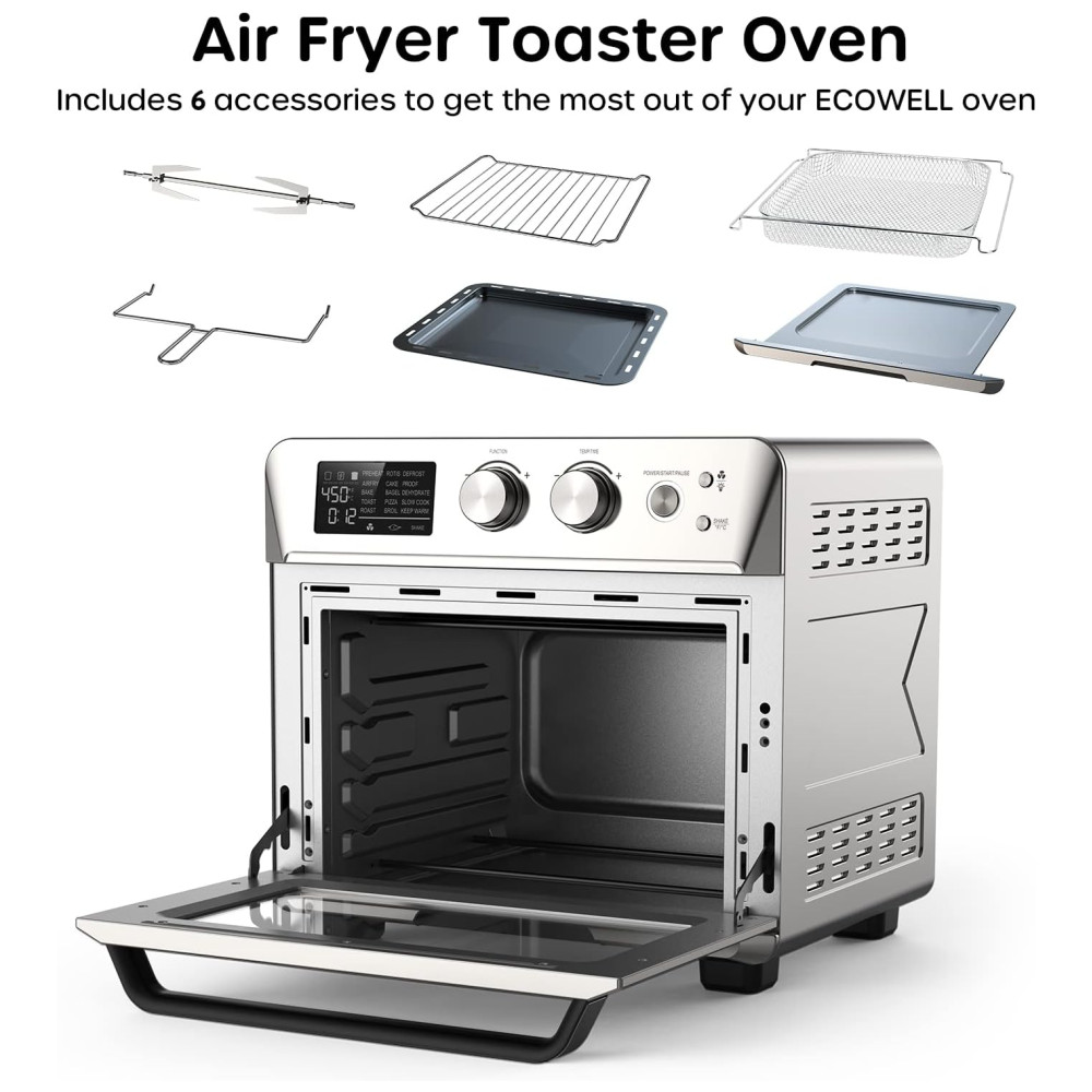Forno Elétrico de Bancada 15 em 1 25L com Função Air Fryer Espeto Giratório em Aço Inoxidável 110V 1700W ECOWELL ECOKX01 Prata