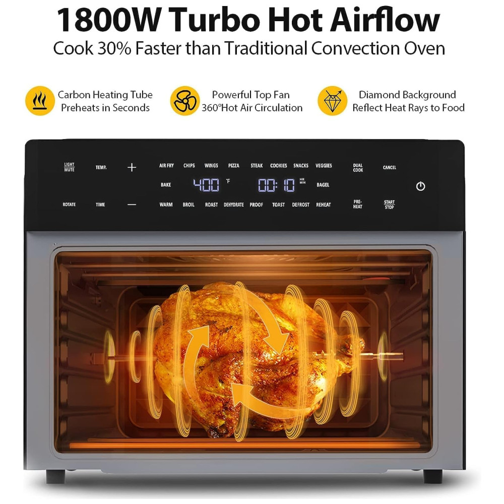 Forno Elétrico de Bancada 19 em 1 30L com Função Air Fryer Espeto Rotisserie Desidratador e Painel Digital 110V 1800W Beelicious Pro Preto