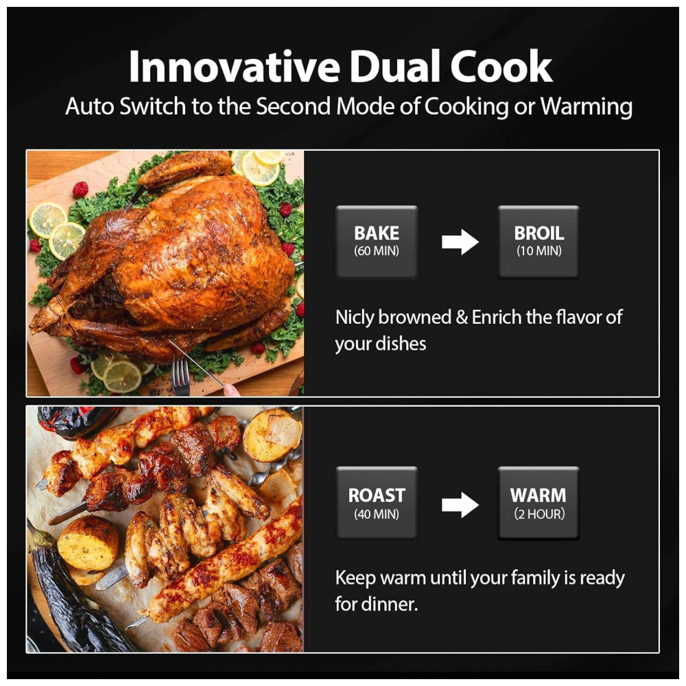 Este forno air fryer multifuncional da Beelicious Pro é o equipamento perfeito para transformar sua cozinha! Com 19+ funções pré-programadas, ele realiza tarefas de air fry, assar, grelhar, rotisserie, tostar, desidratar, descongelar, aquecer, fermentação e muito mais. A inovadora função de cozimento duplo permite combinar duas funções em uma só programação, tornando receitas complexas simples e realçando o sabor dos pratos.