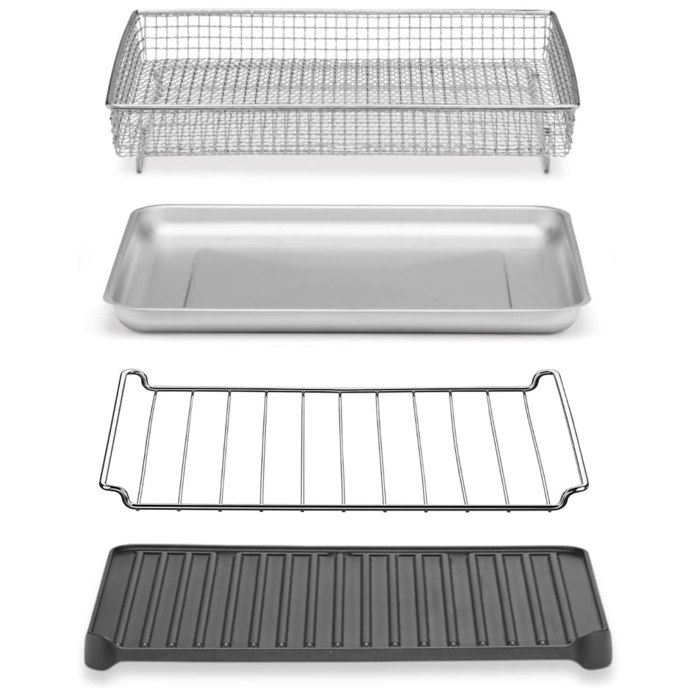 O Forno de Convecção é um equipamento de cozinha de alta qualidade que oferece uma ampla gama de funções, incluindo assar, grelhar e opções quentes para fritadeira de ar. Com uma potência de 1800 watts, este forno é capaz de torrar, assar por convecção, grelhar por convecção e aquecer, com uma faixa de temperatura quente de até 232 graus C. Sua capacidade é grande o suficiente para torrar 6 fatias de pão, fritar 3 quilos de asas de frango, assar uma pizza de ou assar um frango de 4 quilos. O Forno é fácil de operar e inclui um botão de temperatura ajustável, desligamento automático de 60 minutos e um seletor de torrada para garantir que suas refeições sejam preparadas com perfeição. Além disso, o forno vem com uma luz interna, grelha, assadeira, cesta AirFry, grelha e um interior antiaderente easyclean para simplificar a limpeza.
