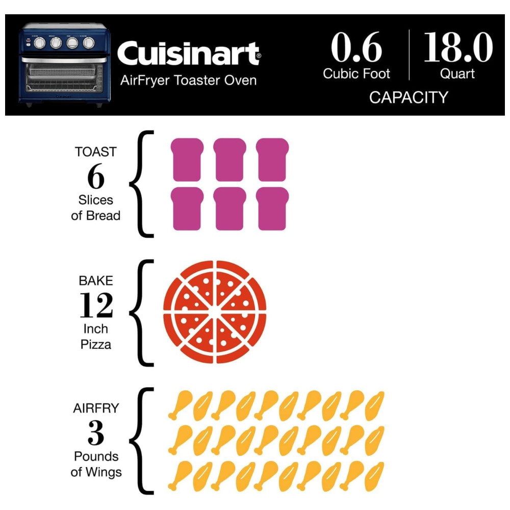 Forno Elétrico de Bancada 2 em 1 com Função de Assar e Grelhar Aço Inox 110V Cuisinart TOA 70NV Azul
